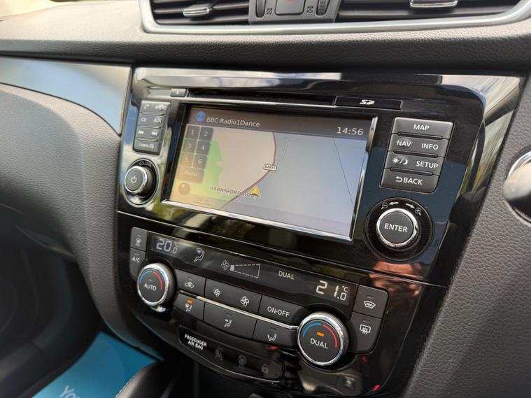 This 2017 Nissan Qashqai DIG-T Tekna boasts an exceptionally low mileage for its age, having covered just 46, 626 miles, and benefits from a full service history, with its last service completed at 46, 626 miles. This Euro 6 compliant 1.6L petrol model comes with the desirable Glass Roof Pack, featuring a fixed panoramic sunroof, and enhances convenience with front and rear parking sensors and a rear view camera. Inside, you'll find Bluetooth connectivity for seamless calls and music streaming, all delivered through a premium Bose 8 speaker sound system.The Qashqai DIG-T Tekna offers impressive performance, accelerating from 0 to 62mph in just 8.9 seconds, while its fuel economy is a notable highlight, achieving up to 49 mpg. These figures, along with its low insurance group and low CO2 emissions, demonstrate how this vehicle offers a more economical and efficient driving experience compared to many others in its class..