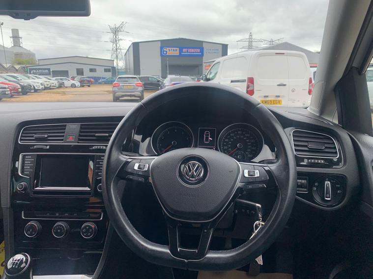 Boasting exceptionally low mileage for its age, this 2014 Volkswagen Golf TSI GT presents a superb ownership opportunity with just one previous owner. This Euro 6 compliant 1.4 litre petrol model comes with a full service history, with its last service completed at 34, 122 miles on 20th August 2025. For your peace of mind, a 12 month MOT will be provided on purchase, and the vehicle is offered with a 3 month warranty. Notable features include front and rear parking sensors with parking assistance, Bluetooth telephone preparation, manual air conditioning, and automatic dusk sensing headlights.This Volkswagen Golf stands out with its impressive fuel economy, achieving a remarkable 59 miles per gallon, which is better than many similar vehicles. Its low CO2 emissions also contribute to its cost effectiveness. You'll appreciate the swift acceleration, reaching 0 to 62 miles per hour in just 8.2 seconds, demonstrating a lively performance. Furthermore, the generous boot space ensures practicality for all your needs, making this Golf a well rounded choice..