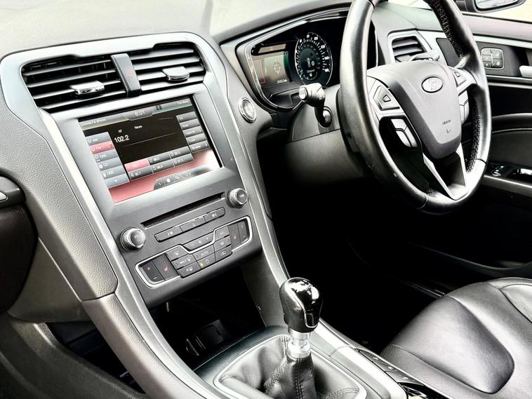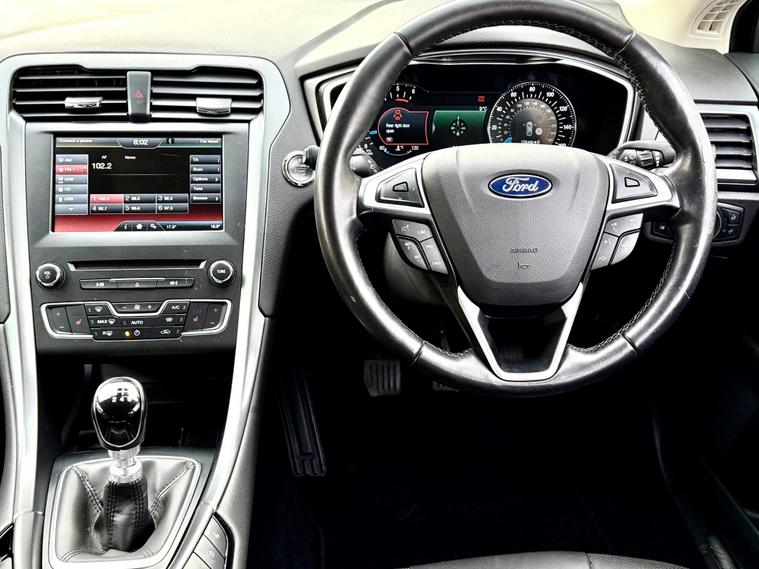 Boasting exceptionally low mileage for its age, this 2016 Mondeo Titanium is finished in Moondust Metallic with full black leather upholstery and presents a superb ownership proposition. With only two previous owners and a clear vehicle history check, this Euro 6 compliant 2.0L diesel model has been meticulously maintained, evidenced by its full service history and a recent service on 05 January 2026 at 23, 451 miles and an MOT valid until April 2027. The impressive Titanium trim level comes equipped with desirable features such as dual zone electronic automatic air conditioning, a comprehensive Bluetooth system for both audio streaming and handsfree calls, and automatic headlights. Furthermore, rear passengers will appreciate the independent rear air conditioning, ensuring comfort for all. The multi-function steering-wheel gives you access to the Cruise Control with Speed Limiter, Audio and phone controls. The in-car entertainment comes by way of Ford DAB Audio System which includes Ford DAB Navigation System which comes with an 8in Touchscreen Colour Display.This Ford Mondeo stands out with its remarkable 0-62mph acceleration time of just 8.3 seconds, demonstrating a lively performance that surpasses many vehicles in its class. Its very low overall mileage of 24, 164 miles indicates it has been lightly used, promising many more miles of reliable motoring. The generous boot space is another key advantage, offering ample room for luggage, shopping, or equipment. A 6 month nationwide premium parts & labour warranty is also included, providing added peace of mind for the new owner.SEE THE VIDEO IN THE ADVERT or use this link. https://youtu.be/_ertnoIm4N8?si=BXpOl59mTrjs8B1o0% Deposit when financing through us.DELIVERY AVAILABLE. The Car Comes With A 6 Month Premium Nationwide Parts And Labour Warranty Finance Available From 10.9 % Apr All Inspections Welcome AA/RAC Px Welcome Viewing By Appointment Only Please Call John On 01992692105 Or 01992692105.