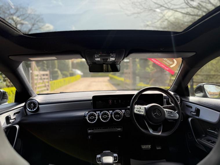 PANORAMIC SUNROOF, This 2019 Mercedes Benz CLA220 AMG Line (Premium Plus) boasts exceptionally low mileage for its age, having covered just 28, 690 miles. This stylish coupe features a powerful 2.0L petrol engine and meets Euro 6 emissions standards, contributing to its low CO2 emissions. The AMG Line trim enhances its sporty appeal, while the Premium Plus package adds a wealth of desirable features. These include the advanced Driving Assistance Package with Blind Spot Assistance and Adaptive Cruise Control, and the convenience of Electrically Adjustable Front Memory Seats.Further enhancing your driving experience, this CLA is equipped with the Energizing Package, designed to create a harmonious cabin environment. Parking is made effortless thanks to the Parking Package, which incorporates front and rear sensors along with a rear camera. The striking MULTIBEAM LED headlights with Adaptive Highbeam Assist Plus provide superior visibility in all conditions. With a brisk 0-62mph acceleration time of just 7.0 seconds, this Mercedes Benz CLA220 AMG Line offers a compelling blend of performance, technology, and comfort, setting it apart from other vehicles in its class..