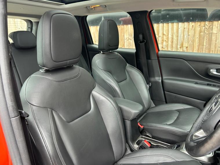 This 2020 Jeep Renegade GSE T3 Limited is a superb example, having been owned by just one careful keeper from new. This stylish SUV boasts a 1.0 litre petrol engine, meeting the Euro 6 emission standards, and comes in the well appointed Limited trim. You'll enjoy the open air with its electric panoramic sunroof, and for added peace of mind, it features Blind Spot Monitoring and Cross Path Detection, along with a helpful rear parking camera as part of the Parking Pack. The Function Pack 2 ensures convenience with keyless entry, and the reversible and height adjustable cargo load floor offers practical versatility for your needs.This Renegade stands out with its low CO2 emissions, indicating a more environmentally conscious choice, and its placement in a low insurance group, which can help keep your running costs down. These factors, combined with its single owner provenance and desirable features, make this Jeep Renegade a compelling option for those seeking a well maintained and economical compact SUV..