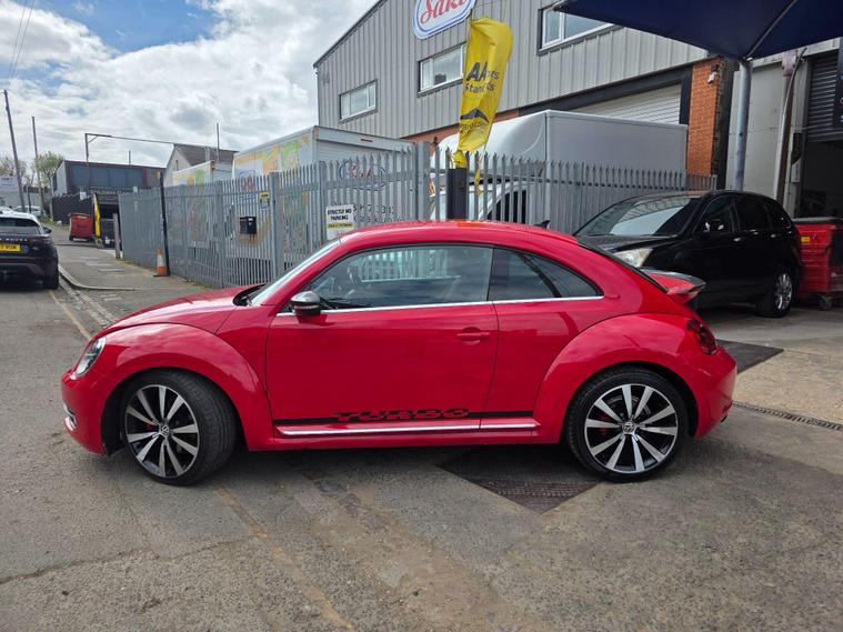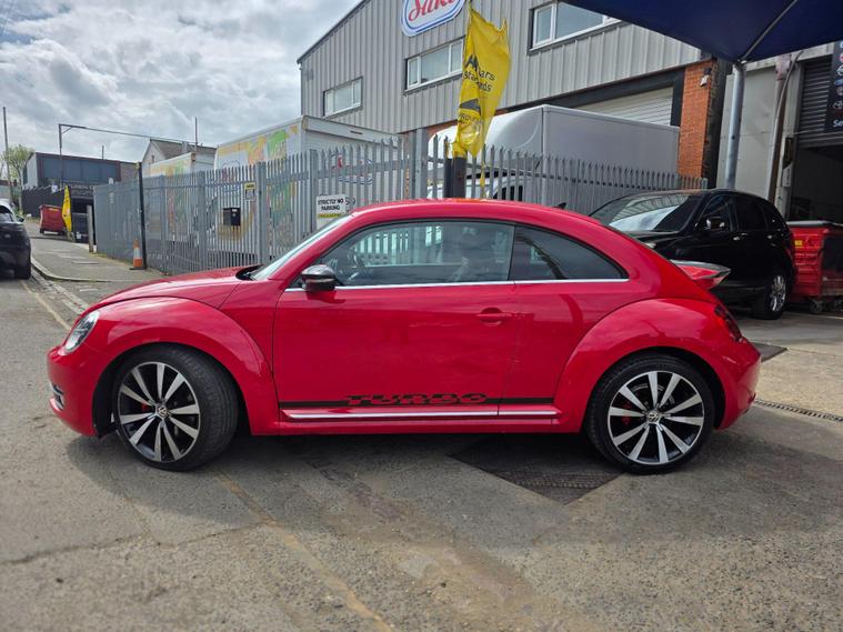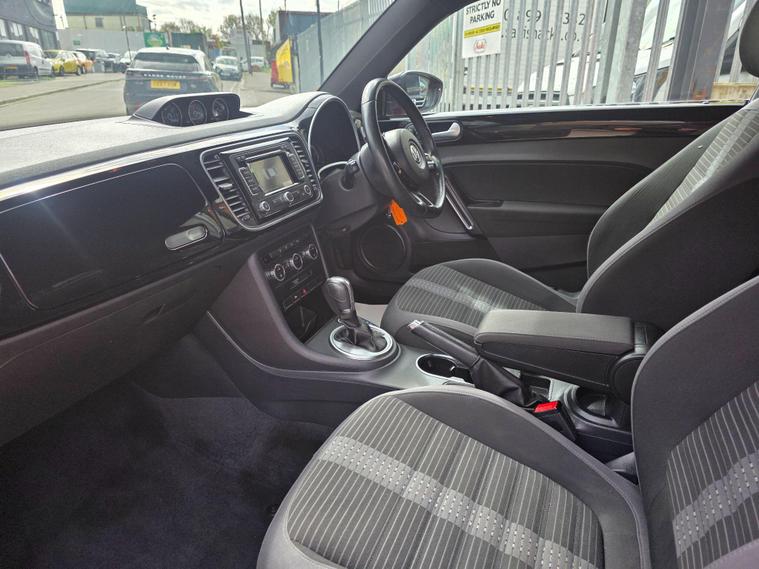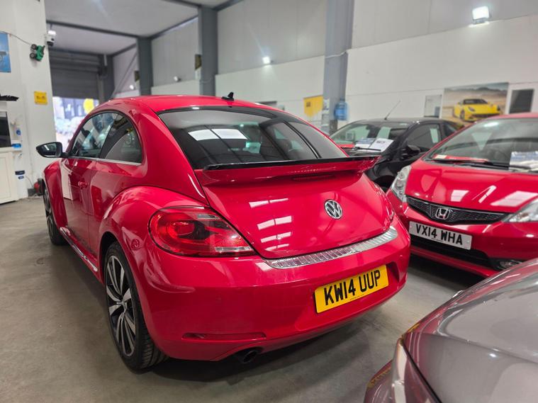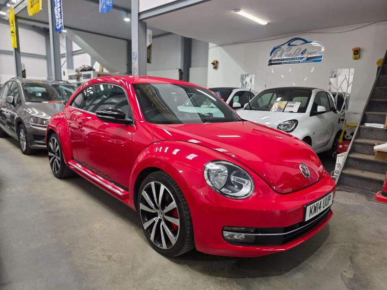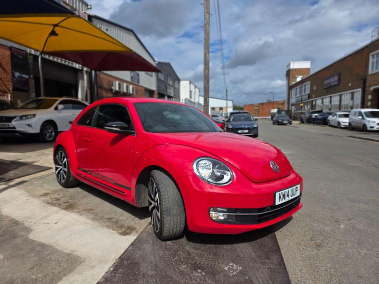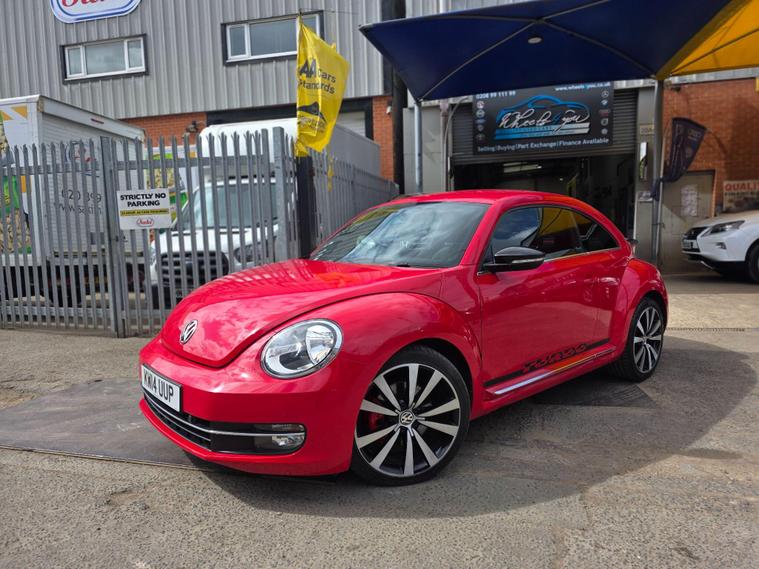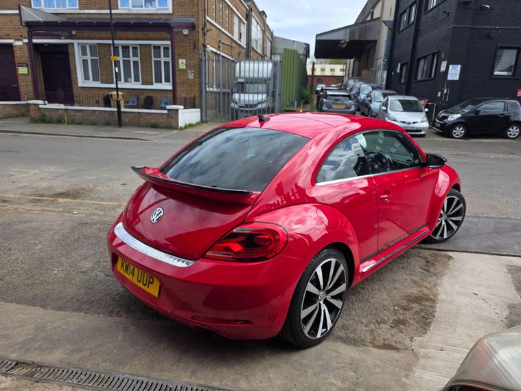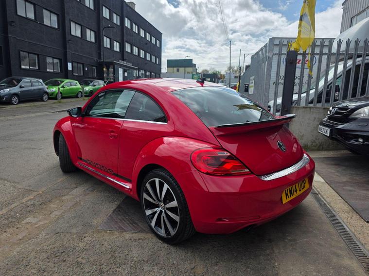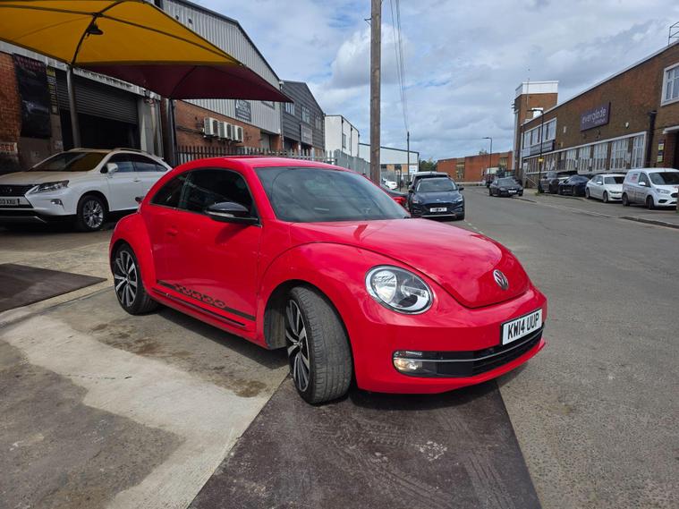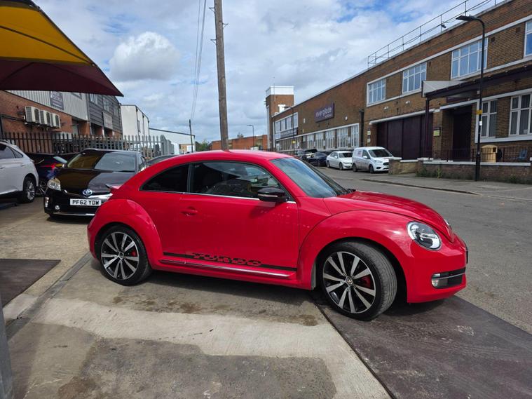DONT MISS IT !! , WHAT A SPORT CAR WITH A BACK SPOILERAND SPORT ALLOYWHEELS !!!! , HPI :CLEAR , FULL SERVICE HISTORY , JUST BEEN SERVICED , 1YEAR AND CLEAN MOT , SATELLITE NAVIGATION , REAR PARKING SENSORS , CRUISE CONTROL , DAB RADIO , AIR CONDITIONING , BLUETOOTH , 2 KEYS , ULEZ, AUX , 3 to 36 months warranty available , days drive away insurance available, in Greenford Perivale London, all major debit and credit card accepted, finance option available, dealer's website All Vehicles Are Subject To A £99.99 Administration FeeThis 2014 Volkswagen Beetle TSI Turbo Black offers a blend of iconic style and modern convenience. Powered by a responsive 2.0 litre petrol engine, this model boasts a Turbo Black trim, enhancing its distinctive appearance. For ease of parking, it comes equipped with both front and rear parking sensors, complemented by parking assistance systems. Inside, you'll find the comfort of 2 zone electronic climate control with automatic air recirculation, ensuring a pleasant cabin temperature for all occupants. Stay connected on the go with Bluetooth telephone preparation, allowing for hands free calls.Experience the spirited performance of this Beetle, with its impressive acceleration reaching 0 to 62 miles per hour in just 7.3 seconds. This quick response indicates a more dynamic driving experience compared to many other vehicles in its class. The combination of its stylish design, practical features like parking assistance and climate control, and engaging performance makes this Volkswagen Beetle a compelling choice for those seeking a car that is both visually appealing and enjoyable to drive..