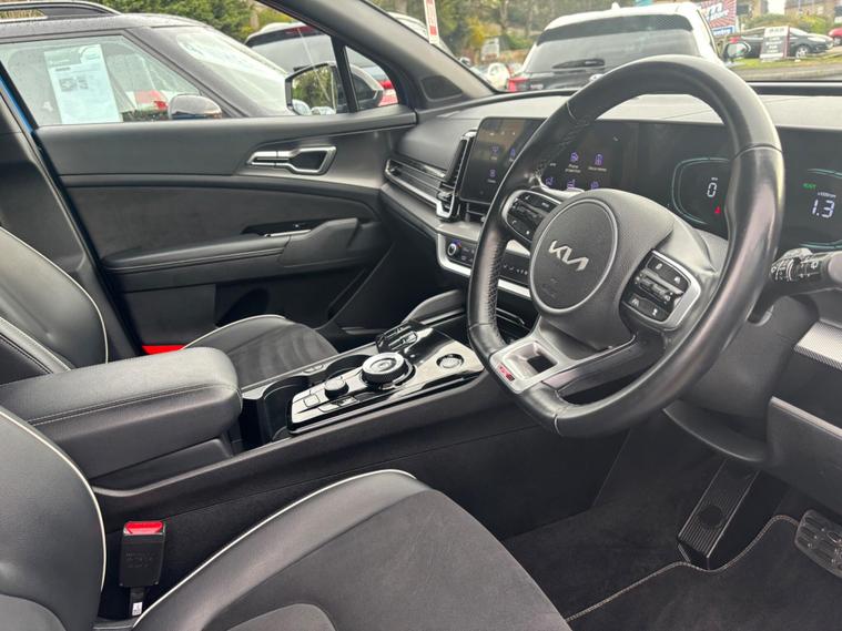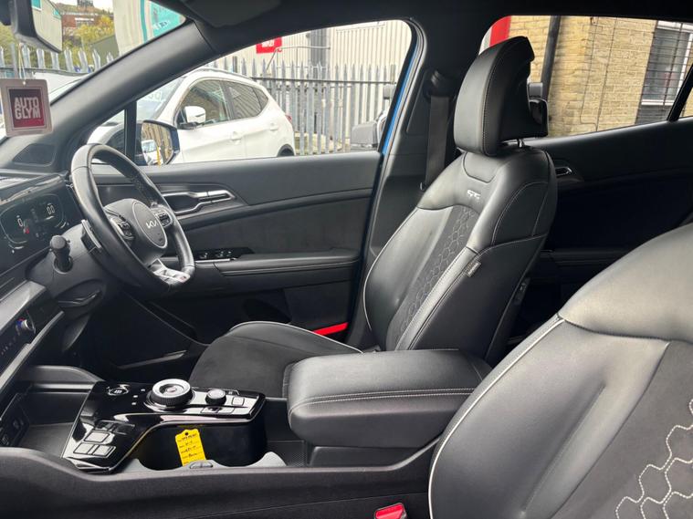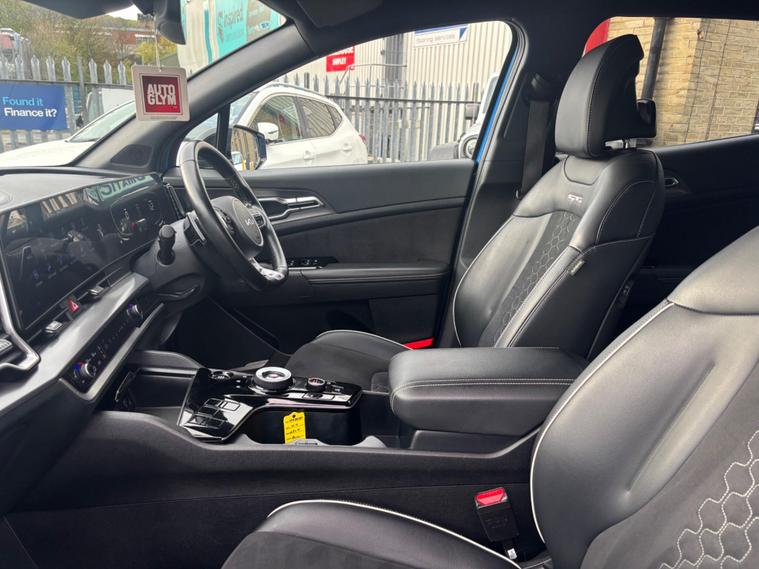 Blue Flame Metallic | 261 BHP | Kia Warranty Remaining | 7 Service StampsWe are pleased to offer this stunning, high-specification Kia Sportage Plug-in Hybrid (PHEV). This Euro 6 automatic All-Wheel Drive (AWD) is finished in the striking Blue Flame Metallic and is complemented by a premium black artico half leather and black cloth upholstery.Vehicle OverviewMileage: 68, 576 sensible miles from new.Ownership: Only 2 owners in total.Performance: High-output 261 BHP model offering incredible power with hybrid economy.Condition: Exceptional condition throughout; drives superbly.MOT: Valid until 22nd May 2027.Warranty: Sold with the balance of Kia’s 7-year / 100, 000-mile manufacturer warranty.Outstanding Main Dealer HistoryThis Sportage has been maintained regardless of cost, featuring seven services (six of which were Kia Main Dealer):12, 071 | 20, 383 | 31, 395 | 40, 446 | 52, 102 | 59, 721 | 68, 576 miles.Recent Maintenance: Just serviced by ourselves at 68, 576 miles using genuine Kia parts.Documentation: Stamped service book with digital printout and 2 keys included.Full GT-Line SpecificationEquipped with the latest 12.3-inch widescreen technology and premium driver aids:Technology: 12.3'' Panoramic Display with Satellite Navigation, Apple CarPlay & Android Auto (with Voice Control), and Bluetooth music streaming.Driver Aids: Parking Distance Control with Rear View Camera, Lane Assist, and Cruise Control.Exterior: 19'' GT-Line Alloy Wheels, Privacy Glass, and signature GT-Line body styling.Hybrid Features: Charging cable included for plug-in electric driving.Interior: Multi-function leather steering wheel and dual-zone climate control.Added ValueHPI clear with certificate.Manufacturer warranty remaining.Any trial or inspection is welcomed.This truly cherished SUV represents excellent value against its cost-new price and must be viewed to be fully appreciated.About UsWe have been established in Baildon for over 20 years. All our vehicles are fully inspected, prepared, and valeted.Finance: We are finance specialists..