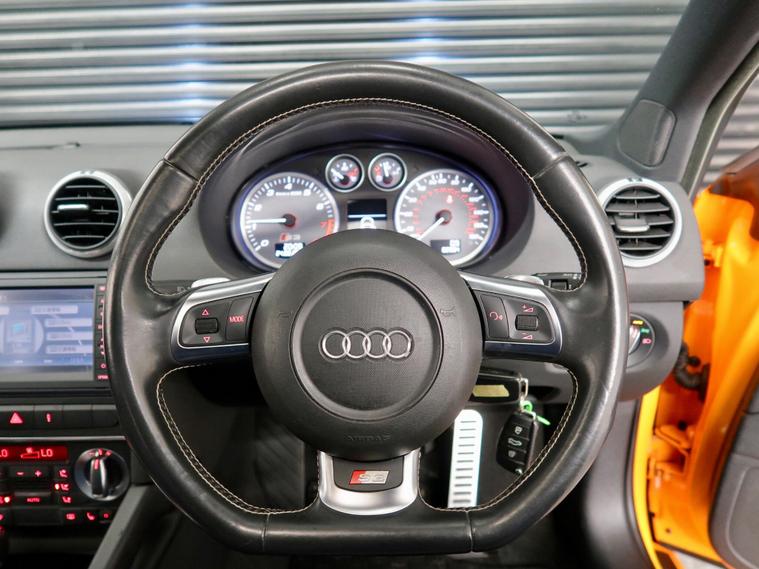 This 2009 Audi S3 TFSI is Finished in the highley desirable colour - Solar Orange with contrasting Full Black Leather interior, it boasts an impressive MOT valid until January 2027, offering peace of mind for the coming years. Under the bonnet, you'll find a powerful 2.0 litre petrol engine paired with a four wheel drive system, delivering an exhilarating 0-62mph time of just 5.6 seconds. This particular example comes with a service history, with its last service completed on 2026-01-15 at 51524 miles. Notable features include an electric tilt and slide sunroof, 18 inch 5 arm design alloy wheels, privacy glass, electric folding door mirrors, and adaptive Xenon plus headlights with LED running lights and headlight washers. A 6 month warranty is also included for added reassurance. Fresh import from Japan.SPEC: FULL BLACK LEATHER INTERIOR +ELECTRIC SEATS + HEATED SEATS + PANORAMIC GLASS SUNROOF + REVERSE CAMERA + ELECTRIC FOLDING MIRRORS + SACHS FULLY ADJUSTABLE COILOVER SUSPENSION + ECS TUNING FRONT AND REAR CROSS DRILLED AND GROOVED BAKE DISKS + 18'' ALLOYS WRAPPED IN PIRELLI TYRES + FRONT ARE REAR DASH CAM + PRIVACY GLASS + XENON HEADLIGHTS. The performance of this Audi S3 TFSI is a clear indicator of its superior engineering, with its rapid acceleration setting it apart from many other vehicles in its class. The combination of its potent engine and advanced four wheel drive system ensures a dynamic and engaging driving experience. This vehicle offers a compelling blend of performance, comfort, and advanced technology, making it a standout choice for those seeking a premium driving experience.About Us We are a family-run business established since 2000, Our reputation is built on trust, quality, and customer satisfaction. We are proud to be recognised as an AutoTrader Highly Rated Dealer for both 2024 and 2025, and finalists in the AutoTrader Retailer Awards 2025, reflecting our continued commitment to exceptional service and customer care. Buy with complete confidence and peace of mind please read our verified customer reviews..