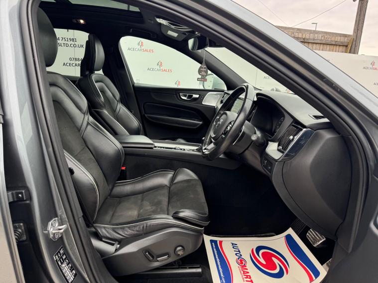 Volvo XC60 2.0 D5 PowerPulse R-Design Pro Auto AWD Euro 6 (s/s). HPI Clear, Full Service History With Volvo Services, 12 Months MOT Included With No Advisories, 2 Keys, EURO6 ULEZ Compliant, Fuel Consumption 51.4MPG, Panoramic Glass Sunroof - Sliding/Tilting, Heads Up Display, Bowers&Wilkins Sound System, Xenium Pack, Convenience Pack, Intellisafe Pro Pack, Winter Pack, Keyless Entry, Keyless Start, Adaptive Cruise Control, Speed Limiting Function, Parking Camera 360 Surround View, Parking Sensors, Park Assist Pilot, Pilot Assist, City Safety with Steer Assist, Lane Keeping Aid with Driver Alert Control, Blind Spot Monitoring System With Steer Assist, Cross Traffic Alert, Rear Collision Mitigation, Distance Monitoring, Automatic Emergency Braking, Road Edge Detection, Road Sign Information Display, Oncoming Lane Mitigation, Run-Off Road Protection, Electric Air Suspension, Active Four-C Chassis System, Speed Sensitive Steering, Sports Chassis, Drive Mode Settings, Transmission - Sport Mode/Manual Functions, Paddle Shifts, Hill Descent Control, Hill Start Assist, Vehicle Deceleration Control, Power Parking Brake with Auto Hold Function, Traction Control, Electronic Stabillity Control, Tyre Pressure Monitoring System, Headlights - Automatic, LED Headlights with Active High Beam, Active Bending Headlights with Adaptive Shadow Technology, Daytime Running Lights, Adaptive Brake Lights, Ambient Door and Instrument Panel Lighting, Multicolour Theatre Lighting, Electric Windows, Electric Mirrors, Powerfolding Mirrors, Electric Front Seats With Drivers Memory Seat, Electric Tailgate Opening/Closing, Heated Front Seats, Heated Steering Wheel, Dual Zone Climate Control, Air Conditioning, Front Heated Screen, Rear Screen Demister, Colour Touch Screen Media Centre Console, Drivers Information Cluster, Navigation, Apple Carplay/Android Auto, Bluetooth, Radio, DAB, AUX, USB, Telephone Connection, Voice Control, Multifunctional Steering Wheel, Alcantara/Leather Seats In Black With R-Design, Volvo Design Door Sills, Exterior Badging, Privacy Glass, Roof Rails, 21inch Alloy Wheels..
