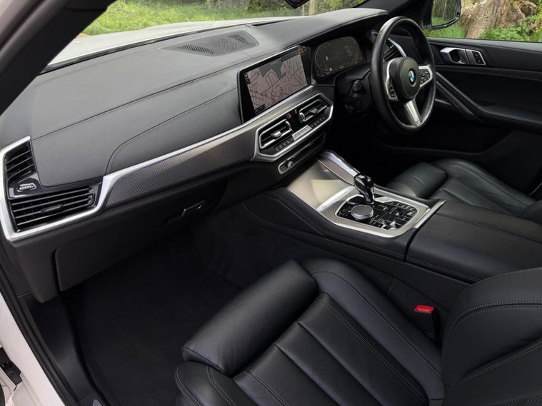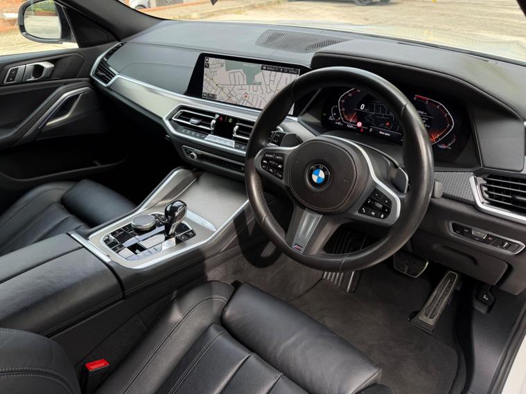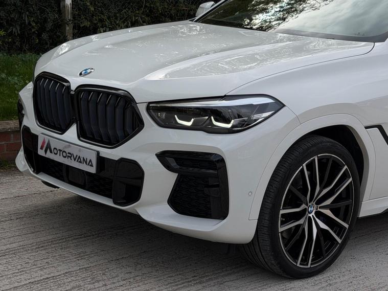 This BMW X6 3.0 30d MHT M Sport Auto xDrive Euro 6 Finished in White and this vehicle comes with the following specification: 21in Alloy Wheels | Perforated Vernasca Leather - Black | M Sport Pro Package | Technology Package | Sun Protection Glazing |Parking Assistant Professional/Plus | Head-Up Display | BMW Gesture Control | Harman Kardon Sound System | Wireless Charging | Extended High-Gloss Shadowline Exterior Trim | 2 Keys | Full Service History |.