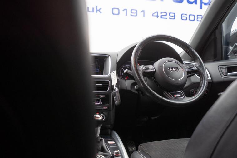 74, 760 miles, This Audi Q5 TDI S line Plus from 2014 offers exceptional value with its remarkably low mileage of just 74, 752 miles for its age. This Four Wheel Drive model is powered by an efficient 2.0 litre Diesel engine and features the sporty S line Plus trim. You'll appreciate the convenience of the multi-function 3 spoke leather sports steering wheel, rear parking sensors for easier manoeuvring, and Bi Xenon Plus headlights with automatic activation thanks to the light sensor. Connectivity is also a breeze with the Bluetooth interface for mobile telephone preparation.The Q5 TDI S line Plus stands out with its generous boot space, providing ample room for all your luggage or shopping needs. The inclusion of Bi Xenon Plus headlights, which are automatic and include Xenon technology, offers superior illumination compared to standard lighting systems. Furthermore, the rear parking sensors and the integrated Bluetooth system highlight how this vehicle is equipped to enhance your driving experience, making it a practical and well appointed choice..