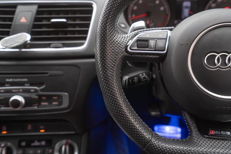- Steering Wheel - 3-Spoke Perforated Leather/Flat Bottomed/RS Q3/Contrast Stitching in Rock Grey