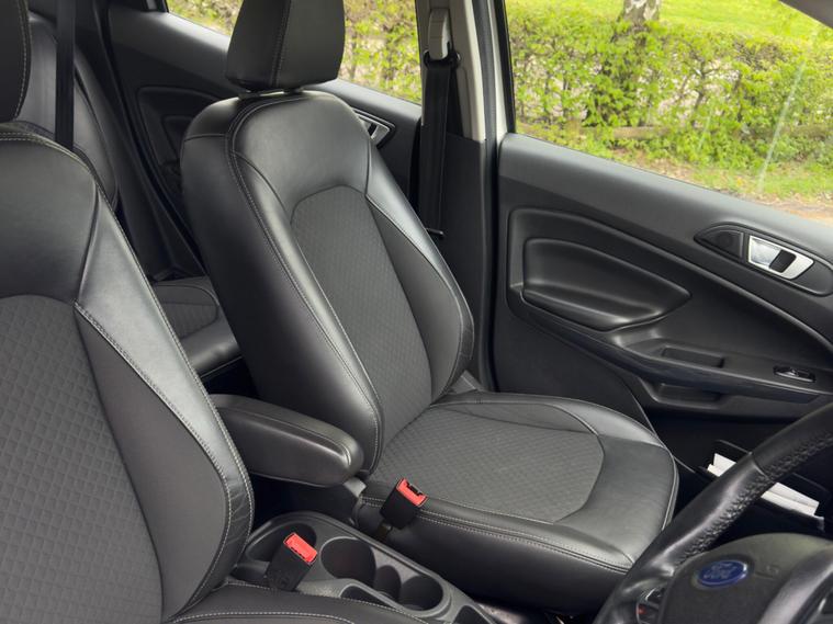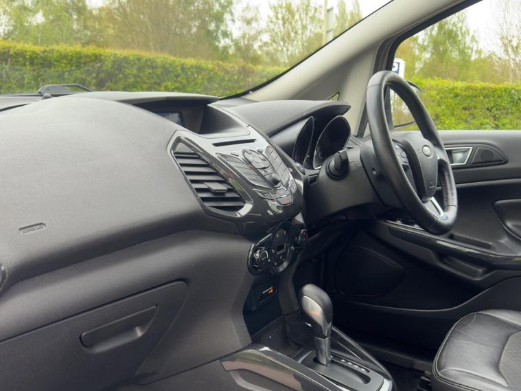 This 2017 Ford EcoSport Titanium offers a superb blend of style and practicality, making it an excellent choice for everyday driving. Powered by an efficient 1.5 litre petrol engine, this model comes with the desirable Titanium trim, ensuring a well equipped and comfortable experience. Key features include rear parking sensors to aid manoeuvring, keyless entry for effortless access, and automatic headlights that adjust to changing light conditions.Inside, you'll appreciate the Electronic Automatic Temperature Control, providing a consistently pleasant cabin environment regardless of the weather outside. These thoughtful additions, such as the climate control and automatic headlights, demonstrate how this Ford EcoSport Titanium stands out, offering enhanced convenience and a more refined driving experience compared to other vehicles in its class..