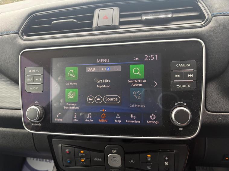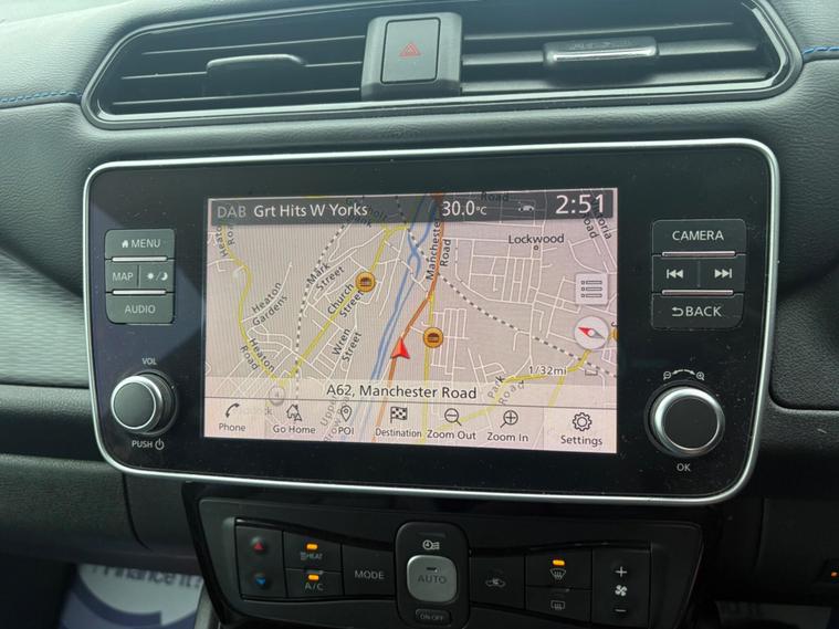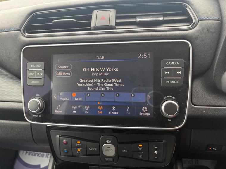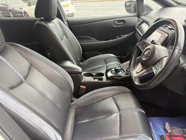 Discover this 2019 Nissan Leaf Tekna, a superb example of electric motoring. This Tekna variant boasts a 40 kWh battery, offering a maximum range of 168 miles when new, making it ideal for both daily commutes and longer journeys. Charging is convenient, with a full charge at home taking approximately 7 hours and 30 minutes using a 7kW charger, and rapid public charging from empty to 80% achievable in just 1 hour and 20 minutes.This Nissan Leaf Tekna comes equipped with a host of desirable features that enhance comfort and convenience. Enjoy the warmth of heated front and rear seats, alongside a heated steering wheel, perfect for colder days. Parking is made effortless with the Around View Monitor and Moving Object Detector, providing a 360 degree camera view, complemented by front and rear parking sensors. Automatic headlights activate with a dusk sensor, and Intelligent Cruise Control adapts to traffic, ensuring a relaxed driving experience. Furthermore, the generous boot space offers ample room for your shopping and luggage, setting this Leaf apart from others..