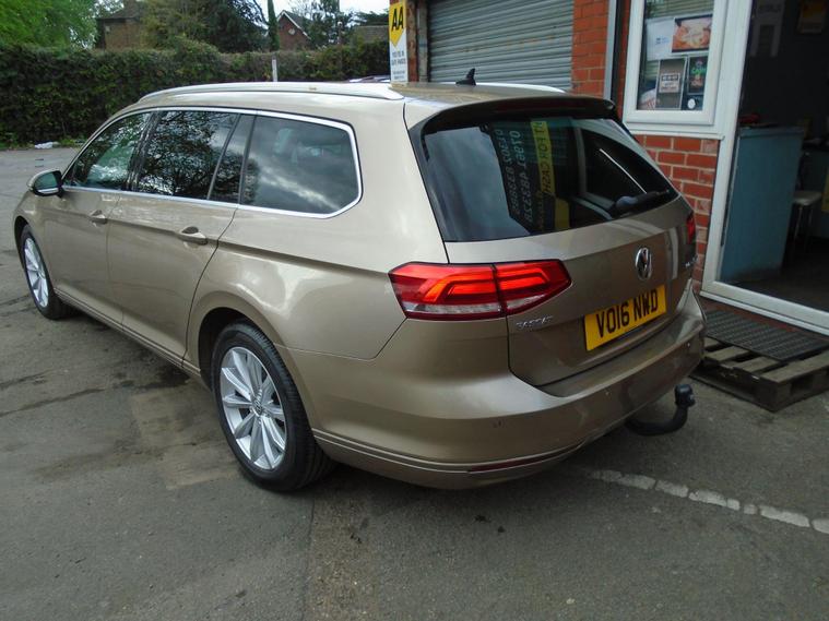 VOLKSWAGEN PASSAT 2.0 TDI BLUEMOTION TECH SE BUSINESS ESTATE EURO 6.GREAT OPPORTUNITY ON THIS ONE PREVIOUS OWNER FROM NEW PASSAT ESTATE WITH FULL SERVICE HISTORY AND CAMBELT AND WATER PUMP dealer's website IN METALLIC CHAMPAGNE WITH CONTRASTING BLACK DETAILED CLOTH INTERIOR.GREAT SPEC WITH SAT NAV, BLUETOOTH CONNECTIVITY, FRONT AND REAR PARKING SENSORS, AIR CON, CRUISE CONTROL, USB+AUX AND 17 INCH ALLOY WHEELS WITH FITTED TOW BAR AND TWO KEYS.VERY ECONOMICAL 2.0 TDI ONLY £20 A YEAR ROAD TAX AND 68 MPG.MOT UNTIL APRIL 2027 AND FRESH SERVICE.12 MONTHS FREE AA BREAKDOWN COVER AND 18 MONTHS WARRANTY INCLUDED IN PRICE.FINANCER AVAILABLE P/X WELCOME..