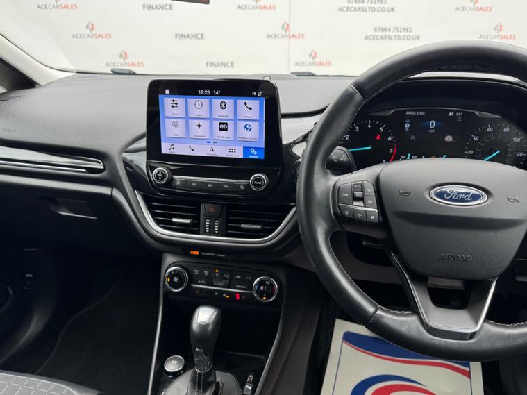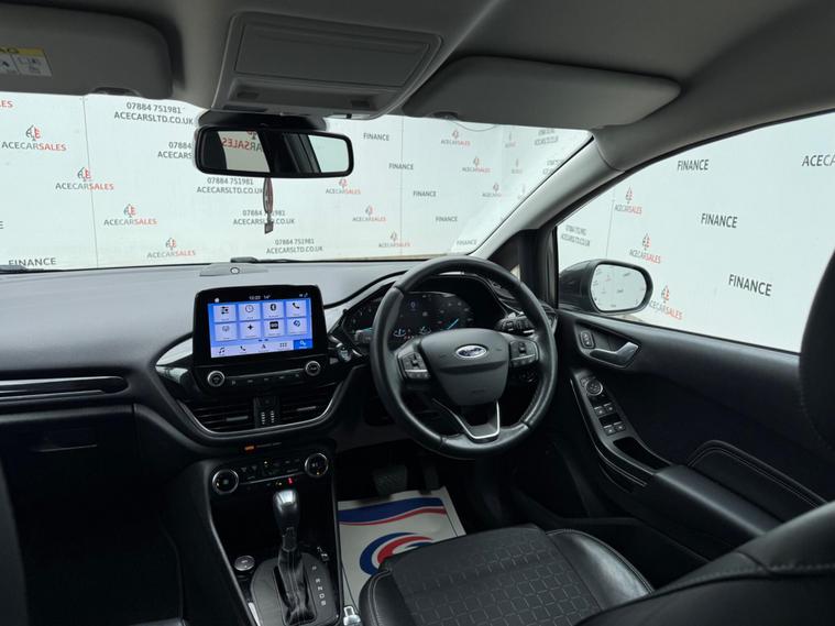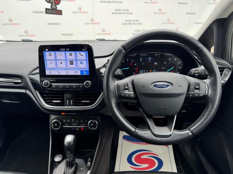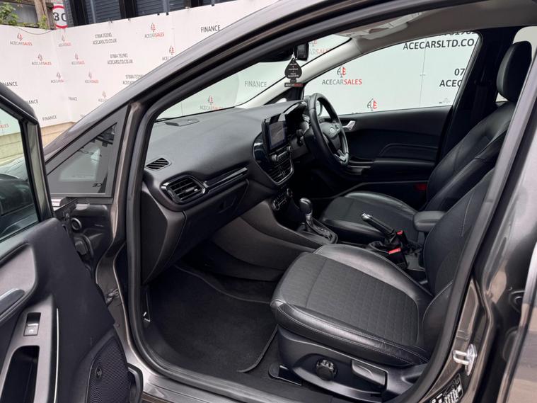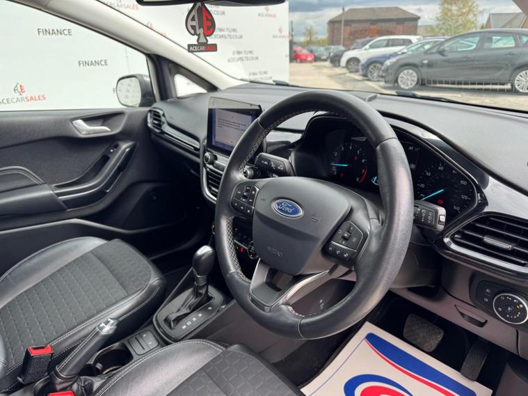 FINANCE & PCP AVAILABLE, COMPLEMENTARY WARRANTY INCLUDED, GOOD CONDITION, WE TAKE PART EXCHANGE! Ford Fiesta 1.0T EcoBoost Titanium X Auto Euro 6 (s/s) 5dr. HPI Clear, Full Ford Dealership Service History, 12 Months MOT Included With No Advisories, 3 Owners, 2 Keys, EURO6 ULEZ Compliant, Fuel Consumption 51.4MPG, Bang&Olufsen Sound System, Keyless Entry, Keyless Start, Cruise Control, Speed Limiting Function, Reverse Camera, Parking Sensors - Rear, Lane Keeping System, Driver Alert System, Traffic Sign Recognition, Start/Stop Function, Sports Gearbox Mode, Electric Power Assisted Steering, Traction Control, Enhanced Electronic Stability Control, Trailer Sway Control, Electronic Brake Force Distribution, Anti-Lock Braking System, Emergency Brake Assist, Tyre Pressure Monitoring System, Headlights - Automatic On-Off, Headlights - Halogen Projector with Black Bezel, LED Daytime Running Lights, Automatic High Beam Assist, Front Fog Lights including Cornering Lights, Rear Lights - LED Night Signature, Electric Window, Electric Mirrors, Powerfolding Mirrors, Heated Front Seats, Heated Steering Wheel, Automatic Climate Control, Air Conditioning, Front Heated Screen, Rear Screen Demister, Colour Touchscreen Media Interface, Drivers Information Cluster, Bang+Olufsen Sound System, Apple Carplay, Navigation, Traffic Information, Bluetooth, Radio, DAB, USB, Telephone Connection, Voice Control, Multifunctional Steering Wheel, Cloth Design Seats, Gloss And Aluminium Interior Trim Designs, Exterior Badging, Privacy Glass, 16inch Alloy Wheels. ALL VEHICLES ARE FULLY INSPECTED PRIOR TO SALE. Wish to make this purchase hassle free with ease? Feel free to enquire about our competitive Financial packages. We can assist you in securing finance for your New car with ease- regardless of your credit status/history. All of our cars are regularly price checked to be amongst the most competitive on the market! We include a COMPLEMENTARY WARRANTY on all our vehicles. We pride ourselves on offering a personalised service to suit your needs. Be our next happy customer today!.