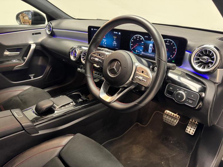 This 2022 Mercedes Benz A Class A180 AMG Line (Executive) boasts exceptionally low mileage for its age, having covered just 21, 000 miles. Powered by an efficient 1.3 litre petrol engine meeting Euro 6 emissions standards, this model comes with the sporty AMG Line trim. It features a helpful reversing camera with parking assistance and 180 degree view, along with convenient wireless charging for your smartphone. Enjoy seamless connectivity with Android Auto and Apple CarPlay integration, and immerse yourself in sound with the 100W Mercedes Benz sound system. Automatic headlamp activation is also included for enhanced visibility.The A180 AMG Line offers a dynamic driving experience, accelerating from 0 to 62 miles per hour in a brisk 8.8 seconds. This performance, combined with its generous boot space, sets it apart from other vehicles in its class, providing both agility and practicality. The inclusion of features like the reversing camera and smartphone integration further enhances its appeal, making it a well equipped and desirable choice for everyday driving..