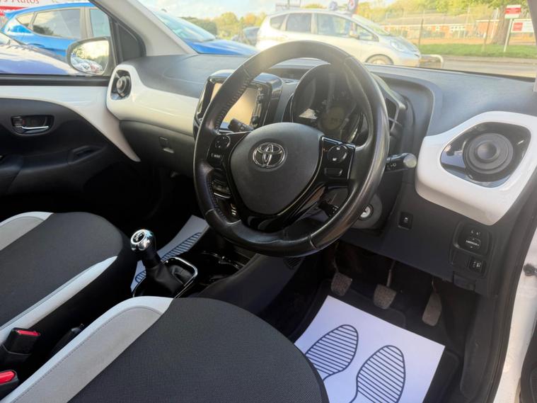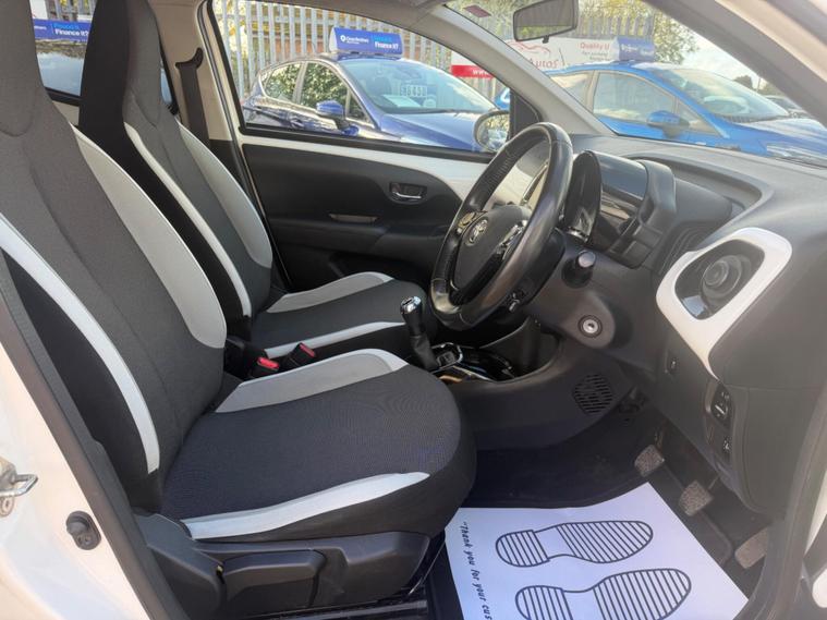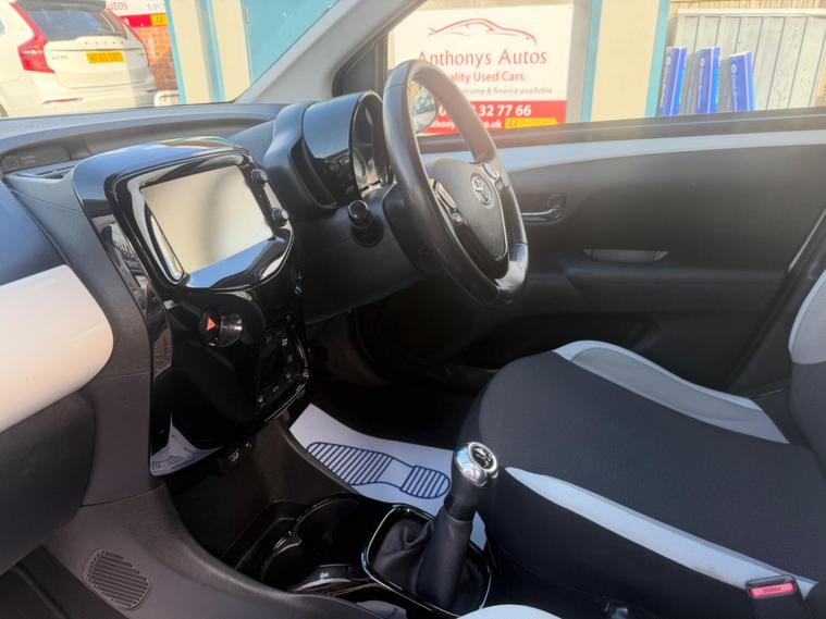 2017 Toyota AYGO 1.0 VVT-i x-style Euro 6 5dr in White. Ideal frist car! 94k miles with a full Service History. Low insurance and just £20 per year road tax. Key features include; steering wheel mounted controls, Bluetooth phone Kit, DAB, Rear Camera, climate control, USB connectivity and remote central locking. A well loved and cared for example. Drives very well. HPI CLEAR. 3 months AA warranty included and a pre-delivery inspection. 12 Months MOT. We can also arrange a competitive low rate 0% Deposit Finance or why not part exchange your old car? All Major Cards Accepted. Call today to view and drive!.