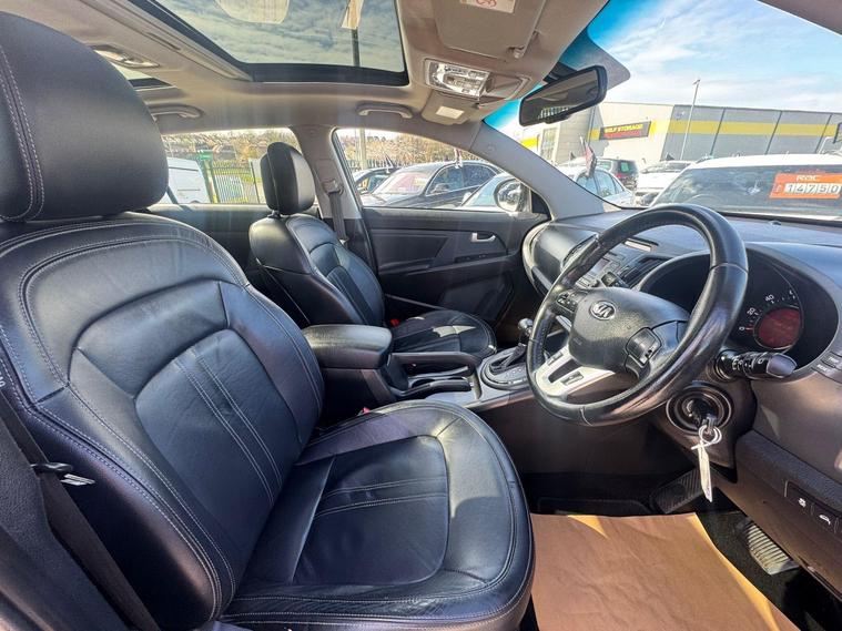 Discover this exceptional 2013 Kia Sportage CRDi KX-3, boasting an incredibly low mileage of just 43, 000 miles, a testament to its careful ownership by only two previous keepers. This Four Wheel Drive model is powered by a robust 2.0L Diesel engine, offering a compelling blend of performance and efficiency. Inside, you'll appreciate the comfort of heated front and rear seats, and the convenience of Bluetooth with voice recognition. The KX-3 trim also features striking Xenon headlights with auto levelling, and for added peace of mind, rear parking sensors are included.This Kia Sportage stands out with its expansive panoramic sunroof, complete with an electric one touch function and safety features, allowing you to enjoy an open and airy cabin. The generous boot space makes it ideal for families or those who need ample room for luggage or shopping. Furthermore, its placement in a low insurance group indicates that running costs are likely to be more affordable compared to similar vehicles. These combined attributes, including its low mileage and desirable features, make this Sportage a truly attractive proposition..