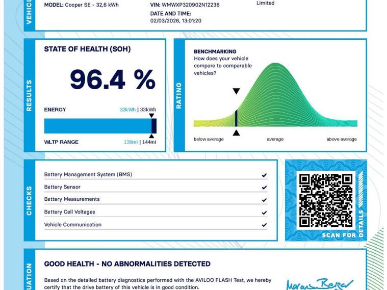 Introducing the stylish and eco-friendly Mini Electric Hatch Cooper SE! Finished in sleek Black, this Mini Electric Hatch is not only a head-turner but also a planet-friendly choice for your daily commute or weekend adventures. With its 32.6kWh Level 2 battery and 184 ps power, you'll experience a smooth and powerful drive every time you get behind the wheel.Don't miss out on the opportunity to own this fantastic Mini Electric Hatch. Visit us today and take it for a test drive to experience the future of driving! For peace of mind this vehicle has completed a multi point AA inspection For peace of mind this vehicle has completed a multi point AA dealer's website finance is also available.We are open 7 days a week and have more than 1500 cars to choose from.All our Euro 4 Petrol and Euro 6 Diesel vehicles meet the ULEZ standard.Vehicle specification can be found below. From time to time vehicles have manufacturer recalls notified. Please read our recall policy on our website for further information. Please be advised that the advertised electric vehicle (EV) listings may experience battery degradation over time, resulting in reduced performance and range compared to the original specifications. Factors such as usage patterns, environmental conditions, and charging practices can contribute to this degradation. While we strive to provide accurate information, the actual battery health and performance of each EV may vary. Customers are encouraged to conduct thorough research and consider the potential impact of battery degradation before making a purchase decision. We recommend consulting with a qualified technician or conducting a battery health inspection for further assessment. This vehicle comes with an AVILOO Battery Health Certificate - the global standard for EV battery testing. Full independent analysis confirms excellent battery condition with detailed State of Health assessment, cell-level checks, and accurate range data. Certificate included with purchase for your complete peace of mind and future resale value.Disclaimer: While every effort is made to ensure the accuracy of vehicle specifications, features, and descriptions, errors and omissions may occur. Specifications and equipment may vary and may not be present on the vehicle at the point of sale. Buyers are advised to confirm all details with the seller before completing a purchase..