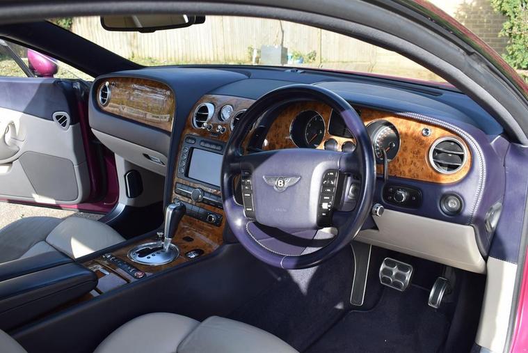 This is one of our 50 Bentleys in stock: 2004/04 Bentley Continental GT. Finished in special order Magenta with a Cream coachline and 2014 Series 21 inch Black and polished alloys, with Portland interior and Nautic secondary hide. Only 51, 000 miles with fantastic service history, with all the invoices. This truly stunning car is a one off and needs to be seen. Outstanding value at only £19, 999 Please see our website dealer's website to view our full selection..