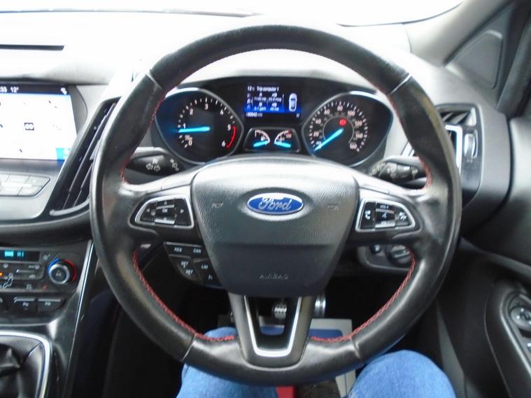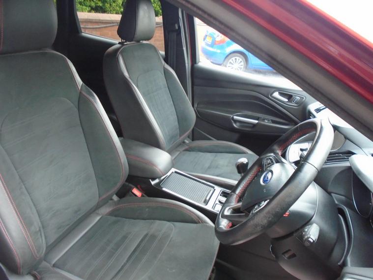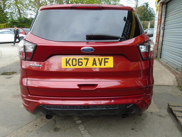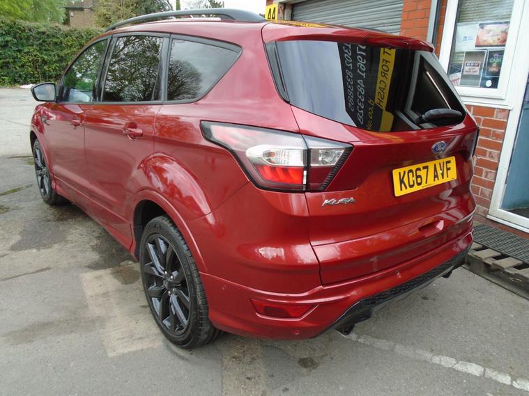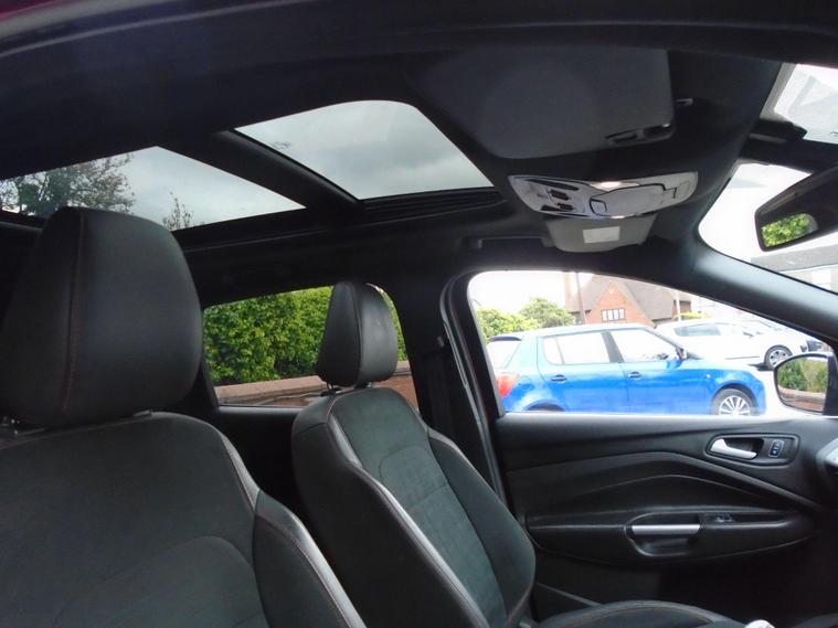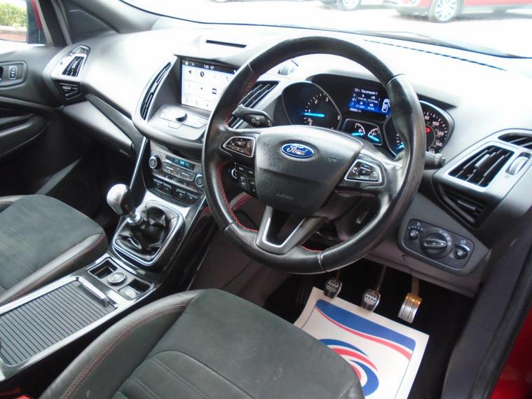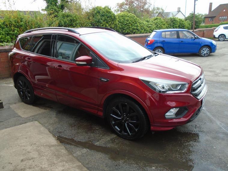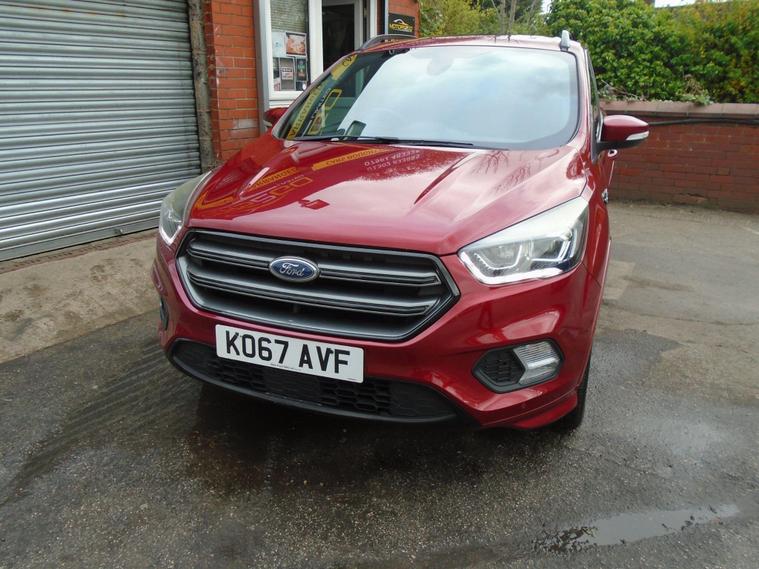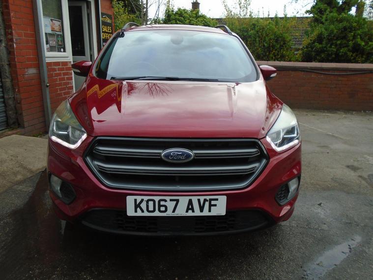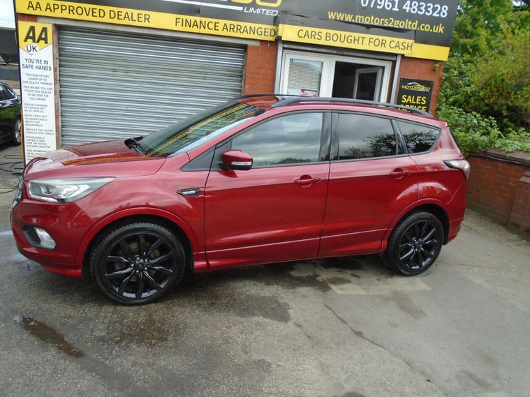 FORD KUGA 2.0TDCI ST-LINE X EURO 6.WINE RED METALLIC WITH CONTRASTING FULL BLACK HALF LEATHER AND ALCANTARA INTERIOR.MASSIV SPEC ON THIS TOP OF THE RANGE SUV, COMES WITH SAT NAV, PANORAMIC SUNROOF, BLUETOOTH CONNECTIVITY, FRONT AND REAR PARKING SENSORS, ELECTRIC SEATS, AIR CON, CRUISE CONTROL, DAB RADIO, USB+AUX AND 19 INCH ALLOY WHEELS WITH TWO KEYS.MOT UNTIL APRIL 2027 AND FULL SERVICE HISTORY WITH FRESH SERVICE.12 MONTHS FREE AA BREAKDOWN COVER AND 18 MONTHS WARRANTY INCLUDED IN PRICE.FINANCE AVAILABLE P/X WELCOME..