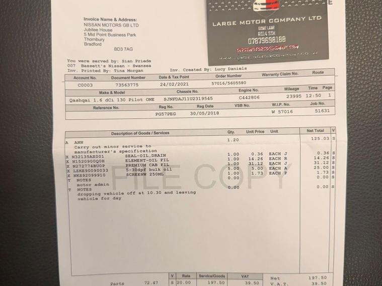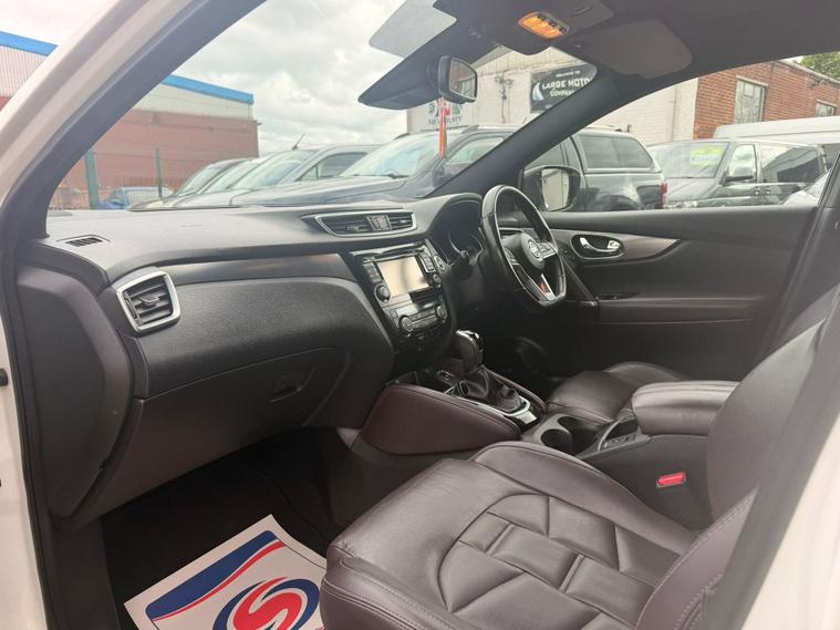 Boasting a full service history with its last service at 100, 000 miles, this 2018 Nissan Qashqai dCi Pilot One Edition offers excellent provenance. This Euro 6 compliant 1.6L diesel model comes with a 3 month warranty and a 12 month MOT provided on purchase, ensuring peace of mind. Notable features include heat pack / seats & wheel , pan roof , quilted leather , Intelligent Auto Headlights, a premium Bose 8 speaker sound system, and the comprehensive Safety Shield with Blind Spot Assistance. For convenience, it also offers Bluetooth connectivity and rear parking sensors.This Qashqai Pilot One Edition stands out with its impressive fuel economy, achieving a highlight of 60 mpg, which indicates it is more economical than many similar vehicles. Furthermore, its low insurance group and low CO2 emissions also highlight its cost effectiveness and environmental consideration compared to other cars in its class..