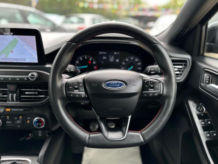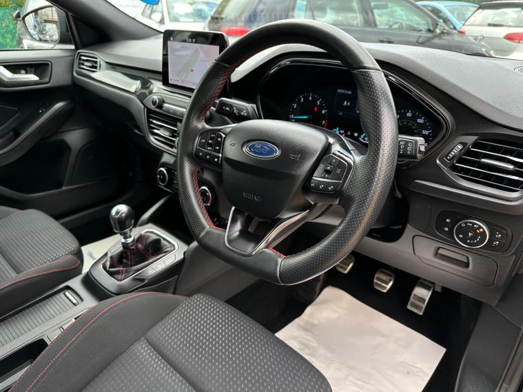 ULTIMATE MOTORS IS DELIGHTED TO OFFER YOU THIS EYE CATCHING FORD FOCUS 1.0T ECOBOOST ST LINE 5DR IN GREY COLOUR AND COMPLEMENTED WITH 17IN 10 SPOKE ROCK METALLIC DESIGN ALLOY WHEELS. THIS VEHICLE HAS A HUGE SPECIFCATION WHICH INCLUDES THE FOLLOWING; SATALLITE NAVIGATION SYSTEM, CARPLAY FOR IPHONE AND ANDROID AUTOS, BLUETOOTH CONNECTIVITY FOR PHONE AND MEDIA, DAB-FM/AM RADIO, MANUAL AIR CONDITIONING, CRUISE CONTROL WITH SPEED LIMITER, LANE KEEPING AID WITH LANE DEPARTURE WARNING SYSTEM, ELECTRIC PARKING BRAKE, KEYLESS START WITH FORD POWER START BUTTON, SPORTS TUNED SUSPENSION, 3 SPOKE LEATHER TRIMMED STEERING WHEEL, HALOGEN HEADLIGHTS WITH LED DAY TIME RUNNING LIGHTS, 6.5IN TOUCHSCREEN, TYRE PRESSURE WARNING SYSTEM. THIS VEHICLE IS ULEZ EXEMPT. WE ARE OFFERING NATIONWIDE DELIVERY ON ALL VEHICLE (PLEASE GET IN TOUCH DIRECTLY FOR DETAILS). WE CAN ALSO CONDUCT VIRTUAL VIEWINGS AND ACCOMMODATE ANY REQUESTS YOU MAY HAVE. ALL OUR ADVERTISED STOCK IS TEST-DRIVEN, INSPECTED BY OUR MECHANIC TO MAKE SURE OUR CUSTOMERS DRIVE AWAY WITH THE BEST QUALITY CARS. WE CAN PROVIDE A VIDEO WALK AROUND THIS VEHICLE UPON REQUEST.ALL OF OUR VEHICLES ARE SUPPLIED WITH A 3 MONTHS WARRANTY WITH EXTENDED OPTION. 12 MONTHS FREE AA BREAKDOWN COVER. FINANCE AVAILABLE..