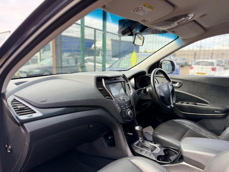 This 2015 Hyundai Santa Fe CRDi Premium boasts a clear vehicle history, offering you peace of mind. This four wheel drive model is equipped with a powerful 2.2 litre diesel engine and features dual zone climate control for personalised comfort. For convenience, it includes rear parking sensors and a rear view parking camera with a guidance system, alongside automatic headlights. Inside, you'll find heated front seats, making every journey more enjoyable.The Santa Fe CRDi Premium stands out with its generous boot space, perfect for families or those who need extra room for luggage or shopping. Furthermore, its low insurance group rating indicates that running costs are kept to a minimum, making it a more economical choice compared to many other vehicles in its class. This combination of practicality, comfort, and cost effectiveness makes this Hyundai Santa Fe a compelling option..
