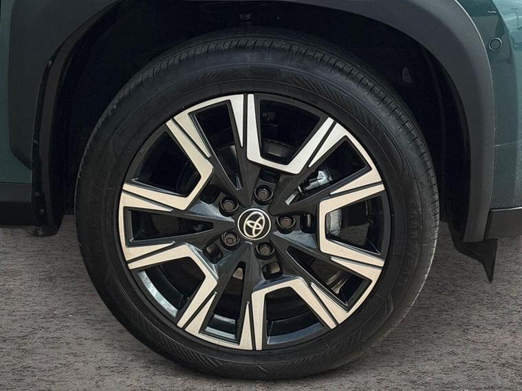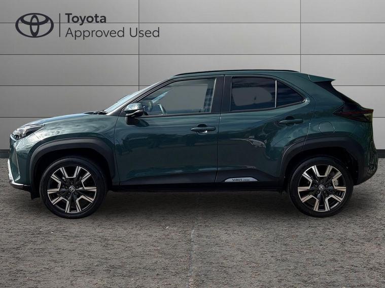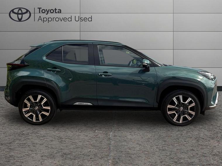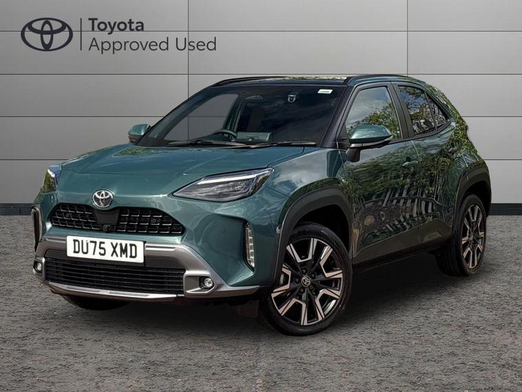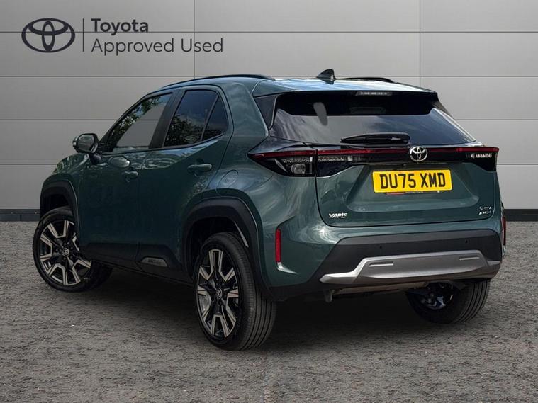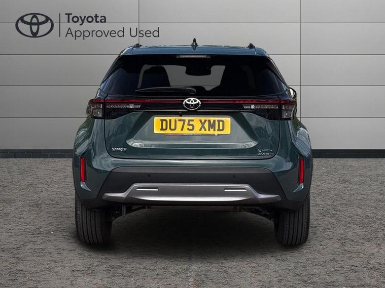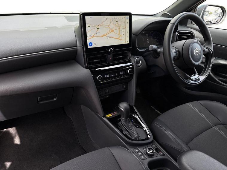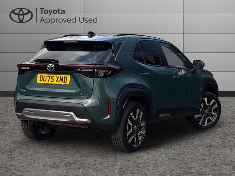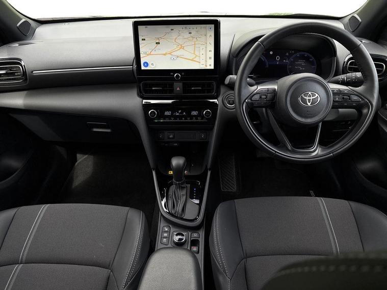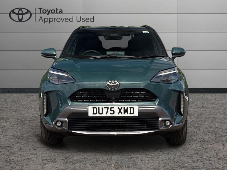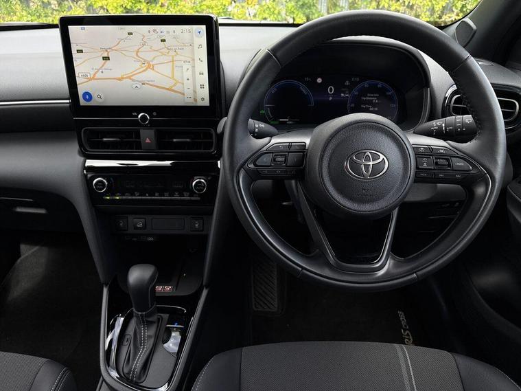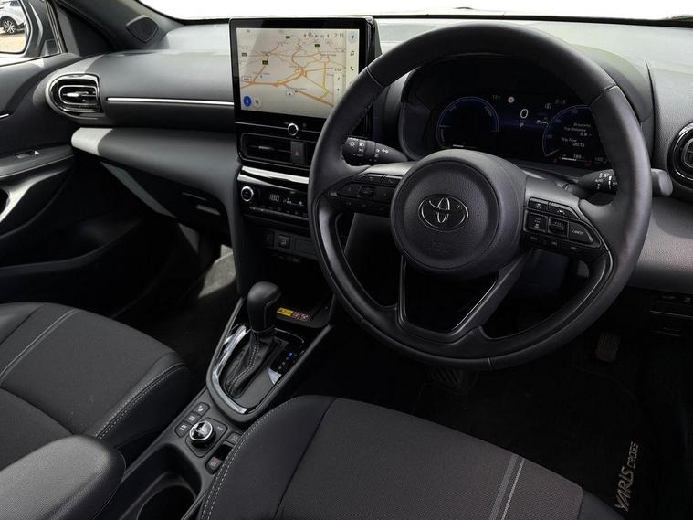 This 2025 Toyota Yaris Cross VVT-h Excel is a Toyota manufacturer approved vehicle with only one owner and a full service history, having just had its first service on 25 September 2025 at 10 miles. This Euro 6 compliant, four wheel drive model boasts a 1.5L petrol hybrid engine and comes with the remainder of its manufacturer warranty until September 2028, with the MOT also valid until September 2028. Notable features include the expansive Toyota Skyview Panoramic Roof with an opening sunroof, adaptive cruise control accessible from the steering wheel, and convenient wireless mobile phone charging.The Excel trim level offers a refined driving experience, enhanced by LED front light guides for superior visibility and wireless smartphone integration, including Apple CarPlay. This Yaris Cross stands out with its low CO2 emissions, contributing to its low insurance group rating, making it an economical choice. Furthermore, you will appreciate the generous boot space, offering practicality for everyday needs and longer journeys..