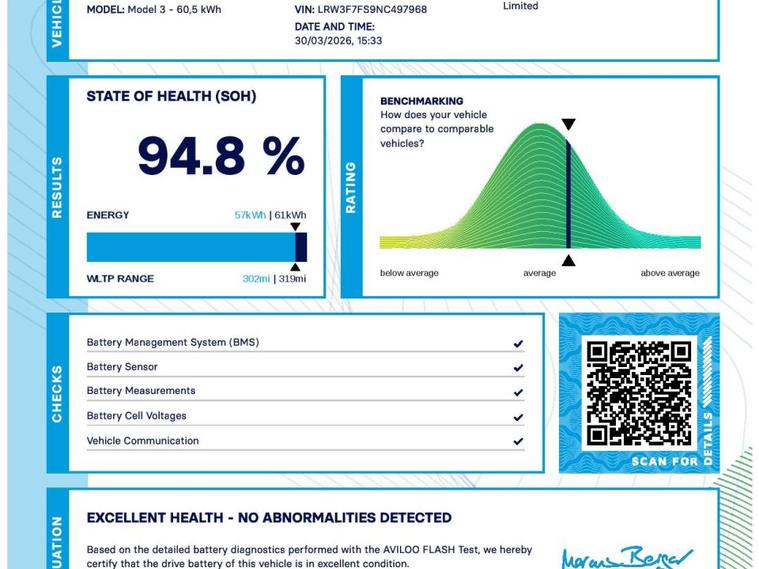 Introducing the Tesla Model 3 - the epitome of luxury and innovation in the world of electric vehicles. This stunning Dual Motor Long Range Saloon boasts an impressive 346 PS, delivering a driving experience like no other. Finished in a sleek and sophisticated Blue exterior, this electric auto is sure to turn heads wherever you go.Experience the future of driving with the Tesla Model 3. From its cutting-edge technology to its eco-friendly performance, this electric saloon offers the perfect blend of style and sustainability. Don't miss your chance to own this exceptional vehicle - contact us today to arrange a test drive. For peace of mind this vehicle has completed a multi point AA dealer's website finance is also available.We are open 7 days a week and have more than 1500 cars to choose from.All our Euro 4 Petrol and Euro 6 Diesel vehicles meet the ULEZ standard.Vehicle specification can be found below. From time to time vehicles have manufacturer recalls notified. Please read our recall policy on our website for further information. Please be advised that the advertised electric vehicle (EV) listings may experience battery degradation over time, resulting in reduced performance and range compared to the original specifications. Factors such as usage patterns, environmental conditions, and charging practices can contribute to this degradation. While we strive to provide accurate information, the actual battery health and performance of each EV may vary. Customers are encouraged to conduct thorough research and consider the potential impact of battery degradation before making a purchase decision. We recommend consulting with a qualified technician or conducting a battery health inspection for further assessment. This vehicle comes with an AVILOO Battery Health Certificate - the global standard for EV battery testing. Full independent analysis confirms excellent battery condition with detailed State of Health assessment, cell-level checks, and accurate range data. Certificate included with purchase for your complete peace of mind and future resale value.Disclaimer: While every effort is made to ensure the accuracy of vehicle specifications, features, and descriptions, errors and omissions may occur. Specifications and equipment may vary and may not be present on the vehicle at the point of sale. Buyers are advised to confirm all details with the seller before completing a purchase..