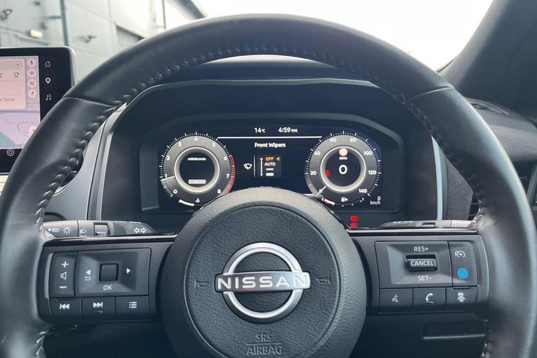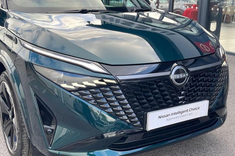 This 2024 Nissan Qashqai DIG-T N-Design is a Nissan manufacturer approved vehicle, offering peace of mind with its proven quality. This Euro 6 compliant model features a 1.3L Petrol Hybrid engine, combining efficiency with responsive performance. The N-Design trim level ensures a stylish and well equipped experience, with notable features including a wireless charging pad for your devices, and front and rear parking sensors to aid manoeuvrability.The Qashqai also boasts advanced safety and convenience systems, such as Blind Spot Warning and Blind Spot Intervention, which help to alert you to vehicles in your blind spots, making lane changes safer. Adaptive LED headlights with adaptive driving beam provide excellent visibility in various driving conditions. Furthermore, the generous boot space offers practicality for everyday needs and longer journeys, setting this Qashqai apart from many other vehicles in its class..