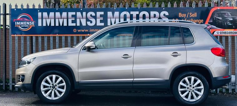 **Volkswagen Tiguan 2.0 TDI BlueMotion Tech Match 4WD 2013 – Beige**Great example of this reliable and practical SUV, finished in a rare beige colour and clearly very well maintained throughout. With just 2 previous owners from new and a full service history, this vehicle is a credit to its former keepers.The most recent service has been carried out at 99, 059 miles, and the vehicle comes with an MOT until April 2027 with no advisories. Also supplied with 2 keys and a 3 month Gold Level Warranty cover for complete peace of mind.A perfect family SUV offering comfort, space, and 4WD capability.Key Details:★ 2 Previous Owners★ Full Service History★ Recently Serviced★ MOT until April 2027 (No Advisories)★ 2 Keys★ 3 Months Gold Level Warranty★ 4WD CapabilityKey Features Include:★ 17in Alloy Wheels - New Orleans★ RNS 315 Touch Screen Satellite Navigation System★ Bluetooth Telephone Preparation★ MDI - Multi Device Interface (USB & iPod Connectivity)★ 5in Colour Display Screen★ 2-Zone Electronic Climate Control★ Automatic Air Recirculation★ Automatic Headlights (Dusk Sensor)★ Rain Sensor Wipers★ Front Fog Lights with Cornering Function★ Electric & Heated Door Mirrors★ Front & Rear Parking Sensors★ Park Assist (Self Parking Function)★ Multifunction Leather Steering Wheel★ Front Sports Seats★ Front Lumbar Support★ Folding Front Passenger Seat★ Electronic Parking Brake with Auto Hold★ Driver Alert System★ Alarm with Interior Protection★ Tinted Rear Windows (Heat Insulating)★ Cooled & Lockable GloveboxA well-maintained and high-spec Tiguan offering excellent practicality, comfort, and year-round usability with its 4WD system.**Ready to drive away**ALL MAJOR CREDIT & DEBIT CARDS ACCEPTEDWE OFFER A CONTACTLESS DELIVERY SERVICE AS WELL AS A CLICK & COLLECT SERVICE. 12 MONTHS BREAKDOWN COVERS OFFERED ON ALL VEHICLES (T&C'S APPLY)ALL VIEWINGS BY APPOINTMENT ONLYP/X WELCOMEEXTENDED WARRANTY COVER AVAILABLE ON ALL VEHICLESFREE DELIVERY AVAILABLE (SUBJECT TO TERMS & CONDITIONS)PLEASE CALL ON: 01782492243.