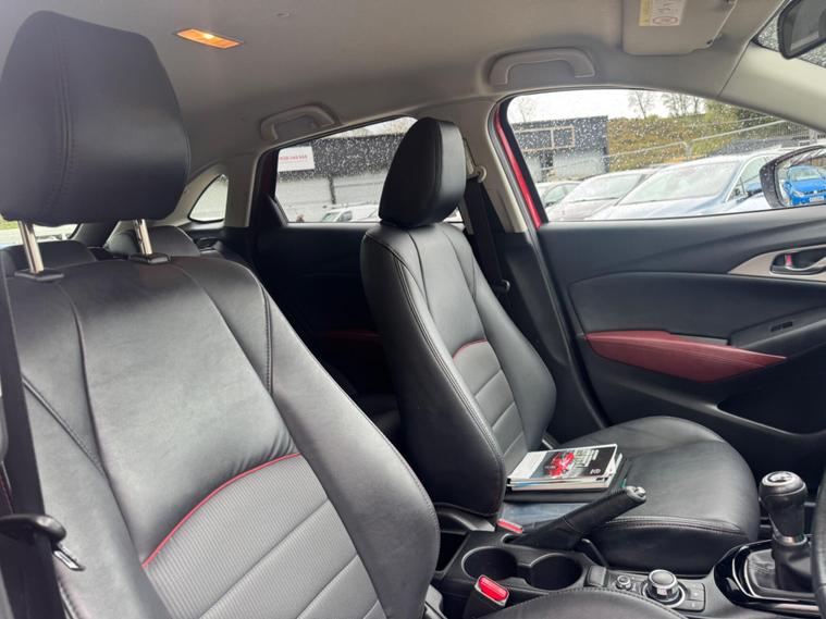 This 2016 Mazda CX-3 SKYACTIV-G Sport Nav is a superb example, having been cherished by just one owner since new. This stylish compact SUV boasts a responsive 2.0 litre petrol engine paired with a capable four wheel drive system, ensuring confident handling in various conditions. As a Euro 6 compliant vehicle, it meets modern emission standards. Inside, you'll find comfort and convenience with automatic climate control, a Bluetooth hands free system for seamless connectivity, and heated front seats for those cooler days. The Smart Keyless Entry adds a touch of modern luxury, while rear parking sensors make manoeuvring in tight spaces a breeze.The CX-3 SKYACTIV-G Sport Nav stands out with its impressive performance, accelerating from 0 to 62 miles per hour in just 8.7 seconds, a testament to its dynamic engineering. Furthermore, its placement in a low insurance group makes it an economical choice for many drivers, indicating a lower cost of ownership compared to similar vehicles. This combination of spirited performance, advanced features, and cost effective ownership makes this Mazda CX-3 a truly appealing proposition..