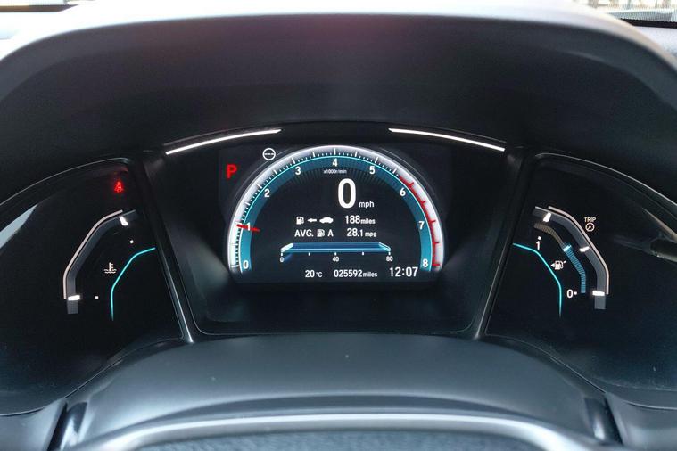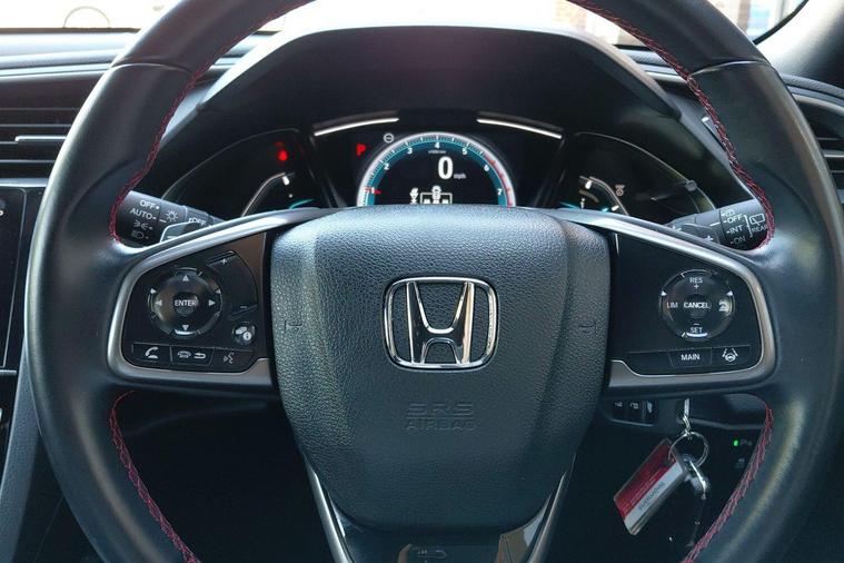 Discover this exceptional 2019 Honda Civic VTEC Turbo Sport Line, boasting remarkably low mileage for its age at just 25, 591 miles. This Euro 6 compliant model, presented in the Sport Line trim, is a Honda manufacturer approved vehicle, offering peace of mind. It features a responsive 1.0L petrol engine and comes equipped with a rear parking camera and front and rear parking sensors to assist with manoeuvring. Stay connected and entertained with the Bluetooth Hands Free Telephone system, while the dusk sensing headlights automatically illuminate your path. For effortless journeys, it includes Intelligent Adaptive Cruise Control, making longer drives more relaxed.This Honda Civic stands out with its generous boot space, providing ample room for all your luggage or shopping needs. Its low CO2 emissions highlight its efficiency, making it a more environmentally conscious choice compared to many similar vehicles. The combination of its advanced features, low mileage, and Honda's renowned reliability makes this Civic VTEC Turbo Sport Line a compelling option for those seeking a well equipped and economical car..