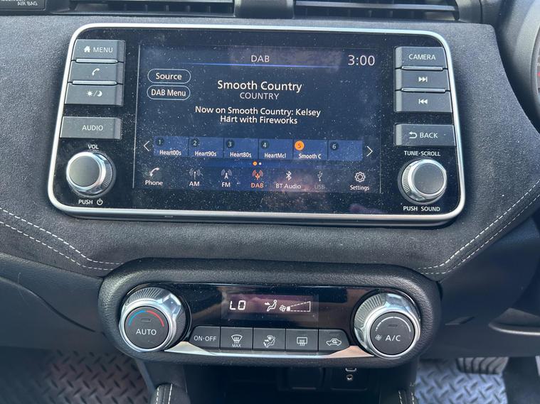 This 2022 Nissan Micra IG-T N-Sport boasts an exceptionally low mileage for its age, having only covered 22, 000 miles, and benefits from a full dealership service history, with its last service completed on 14th April 2026 at 22, 104 miles. This Euro 6 compliant 1.0L petrol model comes with an MOT valid until April 2027 and a 3 month warranty for your peace of mind. Key features include automatic air conditioning with climate control, automatic headlights, and Bluetooth connectivity. For ease of parking, it is equipped with both rear parking sensors and a rear parking camera with parking assistance.The N-Sport trim level of this Nissan Micra offers a compelling package, indicated by its low insurance group, suggesting it is more economical to run than many comparable vehicles. The inclusion of automatic headlights and climate control further enhances its appeal, providing a more comfortable and convenient driving experience. These features, combined with its well maintained provenance and low mileage, position this 2022 Micra as an attractive option for those seeking a reliable and well equipped compact car..