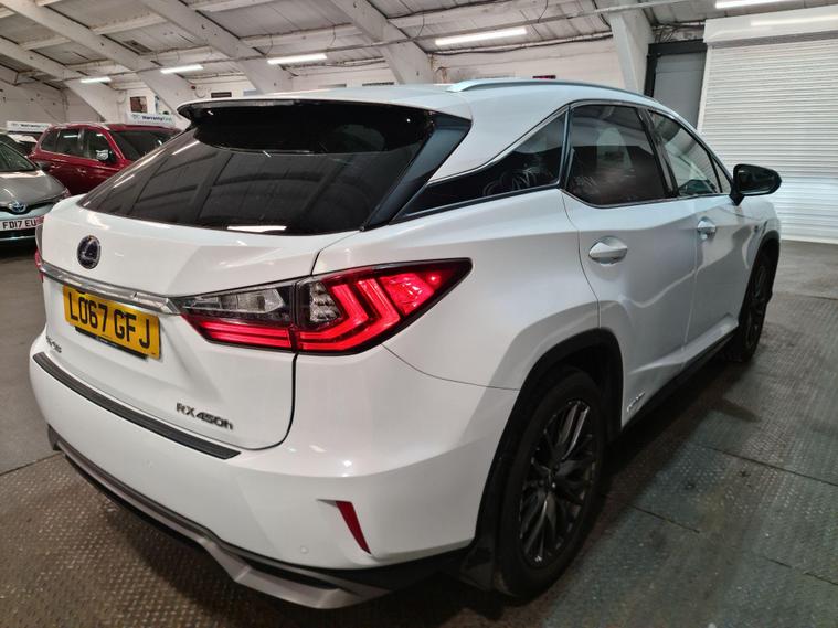 Category N, Ghost security installed, Service history, recent service, Full MOT history, We offer great prices for your Part Exchange, Any Inspection welcome, 3 to 48 months warranty available subject to terms and condition, Gearbox & Engine in Excellent ConditionThis 2017 Lexus RX 450h F Sport is presented in excellent condition, boasting a 3.5L petrol hybrid engine and Four Wheel Drive capability. As a Euro 6 emission class vehicle, it offers an efficient and refined driving experience. This F Sport model comes equipped with a host of desirable features, including a panoramic roof with an opening sunroof, intelligent parking assist sensors both front and rear, and a convenient smartphone wireless charger. Inside, you'll find a memory function for the driver's seat and a dual zone climate control air conditioning system with S Flow and Nanoe technology for personalised comfort.The Lexus RX 450h F Sport stands out with its impressive performance, accelerating from 0 to 62mph in just 7.7 seconds, demonstrating its dynamic capabilities. Furthermore, its placement in a low insurance group indicates that running costs are kept competitive compared to similar vehicles. This combination of advanced technology, powerful yet efficient hybrid performance, and thoughtful features makes this Lexus RX a compelling choice for those seeking a premium and practical SUV..