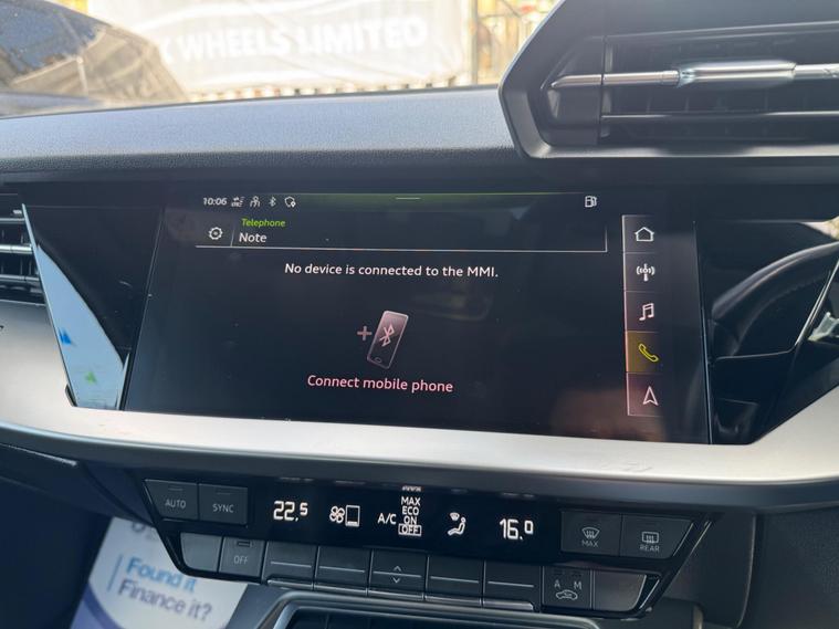 This 2021 Audi A3 TFSI Sport is a standout example, boasting exceptionally low mileage of just 15, 600 miles from its single owner. This Euro 6 compliant model features a 1.0 litre petrol engine and comes in the desirable Sport trim. You'll appreciate the convenience of rear parking sensors with parking assistance, dual zone electronic climate control to keep everyone comfortable, and automatic headlights thanks to the light and rain sensors. The car is equipped with modern LED headlights and daytime running lights, complemented by halogen rear lights, and includes a Bluetooth interface for seamless connectivity.Experience impressive efficiency with a fuel economy of 54 miles per gallon, alongside low CO2 emissions, making this A3 a sensible choice. Its acceleration from 0 to 62 miles per hour in 10.6 seconds is competitive for its class, and you'll find the large boot space offers excellent practicality for everyday needs and longer journeys. These highlights demonstrate how this Audi A3 offers a superior driving experience and ownership proposition compared to other vehicles in its segment..