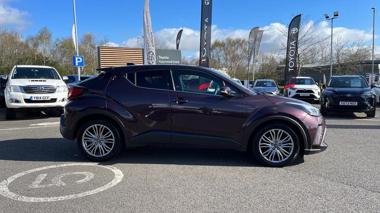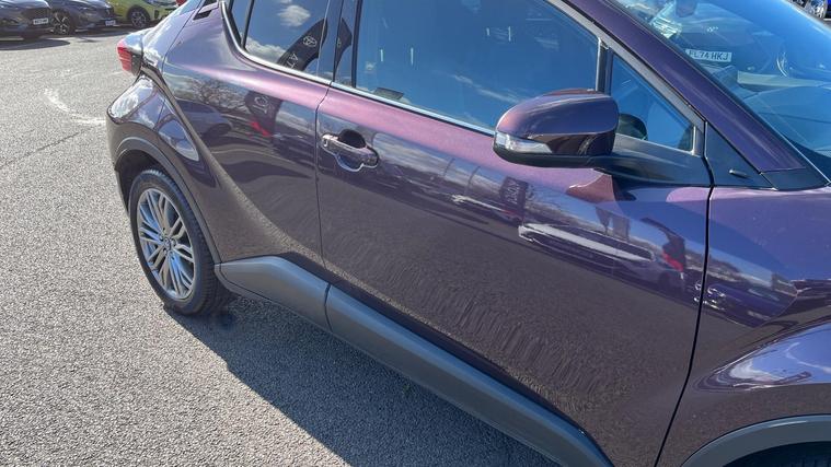 This 2023 Toyota C-HR VVT-h Excel is a Toyota manufacturer approved vehicle, boasting a full service history and having had only one owner from new, all covered by a 12 month warranty. This stylish hatchback features a responsive 2.0L petrol hybrid engine, meeting Euro 6 emission standards. Its Excel trim level comes equipped with a comprehensive Tech Pack, including Blind Spot Assistance, Keyless Entry, and front and rear parking sensors. You'll also benefit from Adaptive LED Headlights, Auto Headlights, and a Reversing Camera for enhanced visibility and convenience.Experience impressive efficiency with a highlighted fuel economy of 53 mpg, alongside low CO2 emissions and a low insurance group, making this C-HR an economical choice. Its performance is equally noteworthy, achieving 0-62mph in just 8.2 seconds. These highlights demonstrate how this Toyota C-HR offers a superior driving experience compared to other vehicles in its class..