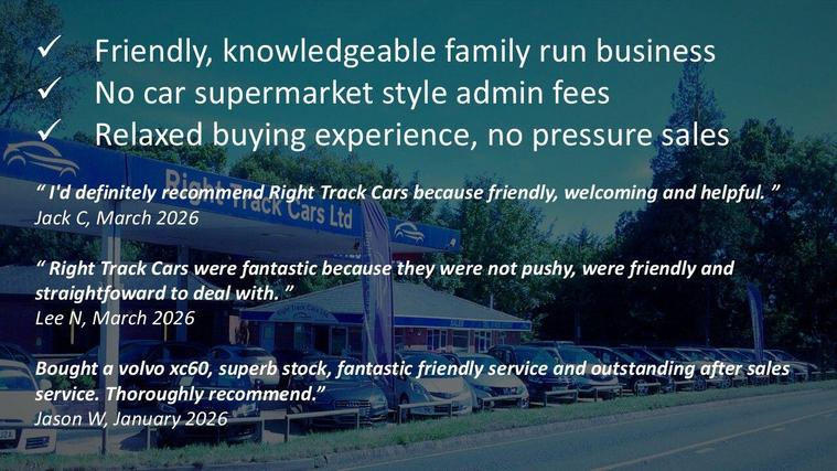 Right Track Cars Ltd are a well established, family run business known for the quality of our vehicles and our friendly and professional customer service. Mechanically inspected by us and benefitting from a full service history with its last service completed in Sept 2025 at 70, 084 miles, and a cambelt change in Aug 2024 @63k miles, this 2018 Volvo XC60 D4 Momentum Auto AWD is a beautiful and well maintained example. This Four Wheel Drive SUV is powered by an efficient 2.0L Diesel engine, meeting Euro 6 emission standards. It comes with a comprehensive, nationwide 6 month RAC warranty, 12 months RAC breakdown cover and a new MOT, offering peace of mind. Notable features include the optional Winter Pack with a heated steering wheel, heated front seats and heated windscreen, 18'' alloy wheels, leather upholstery, Sensus satellite navigation, Bluetooth handsfree system, rear park assist, DAB radio, 9'' touch screen, climate control a/c, cruise control, power tailgate and LED headlights with active high beam.The Volvo XC60 D4 Momentum offers impressive performance, accelerating from 0-60mph in just 7.9 seconds, demonstrating its capability. Its substantial boot space is a practical advantage for everyday use and longer journeys. With a towing weight of 2400 kg, this vehicle is well equipped for a variety of needs, making it a versatile choice compared to similar vehicles. **OWN THIS CAR FOR £353 A MONTH, SEE IMAGES FOR DETAILS**. 10.9% APR (TYPICAL) SAME DAY FINANCE AVAILABLE. Great value RAC extended warranties available. We are open Monday to Saturday from 9.30 - 5.00 (4.00 on Saturdays). Please call us on 01425317413 or e-mail us at righttrackcars dealer's website to arrange your viewing and test drive, or call in at your convenience.**Right Track Cars have been awarded Auto Trader's coveted Highly Rated for Customer Service Award many times and proudly hold a 4.9* average Customer Review Rating on Auto Trader / Feefo.**.