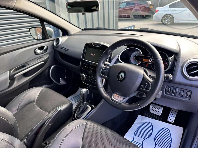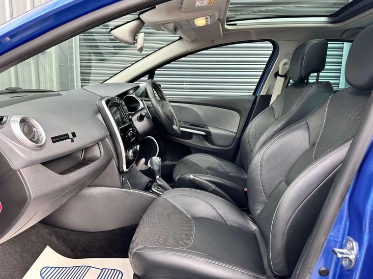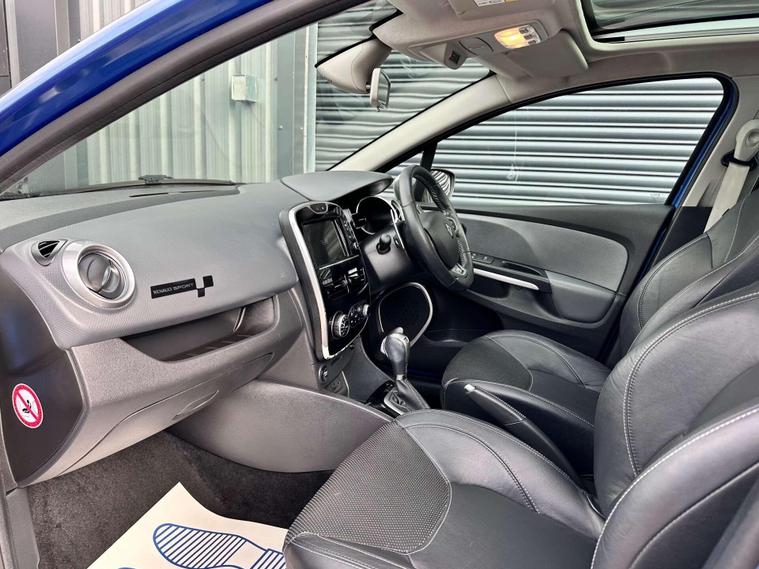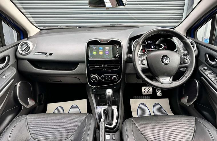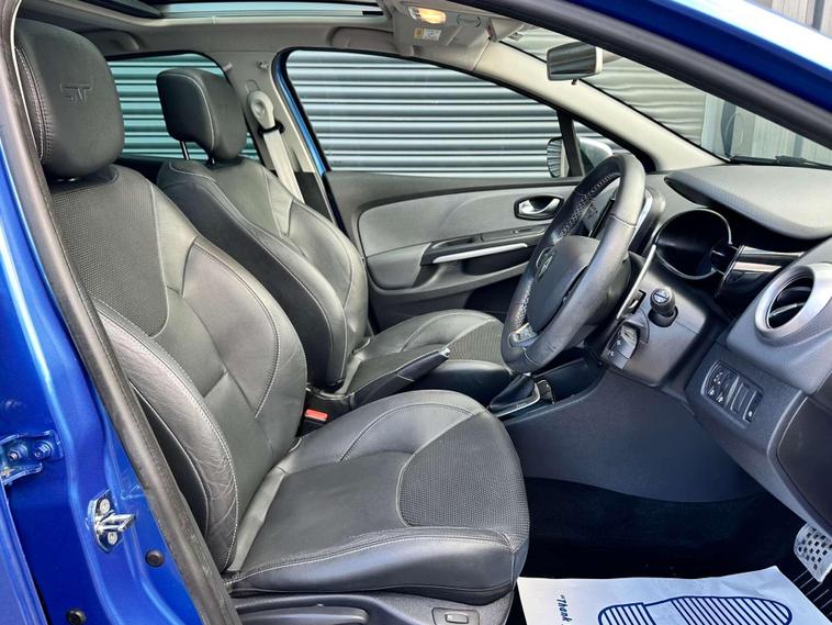 Renault Clio 1.2 TCe GT Line Nav Hatchback 5dr Petrol Auto Euro 6 ULEZ FREE. Finished in Iron blue metallic with a full black leather interior and contrast white stitching and embossed headrests. 17'' anthracite alloy wheels, satellite navigation (SD card required) Reversing camera, Panoramic Glass roof with closing sunblind, USB connectivity, cruise control, techno pack, electric heated door mirrors, privacy glass, Renault sport rear spoiler, LED daytime running lights, air conditioning, Bass reflex speakers and multifunction steering wheel, RS Drive. Here at Saracen Motor Group we have been awarded AA Platinum dealership recognition along with being nominated for best customer service by Autotrader in 2021, 22, 23, 24 & 2025. We are proud to boast that we are a 5 star AA platinum dealership with over 600 five star reviews across all internet platforms including Autotrader and have been regarded as one of the best dealerships to buy from in the UK. Our preparation inspected each vehicle to the highest level possible for it’s age and mileage. You can rest assure your next car has been cared for to the highest standard. Service history, V5 and the HPI certificate will all be present on viewing and collection. With our location based in Battlesbridge, Essex you can enjoy a haggle-free buying experience where you can drive away the same day if prior arranged, additional fees apply please see our website for details..