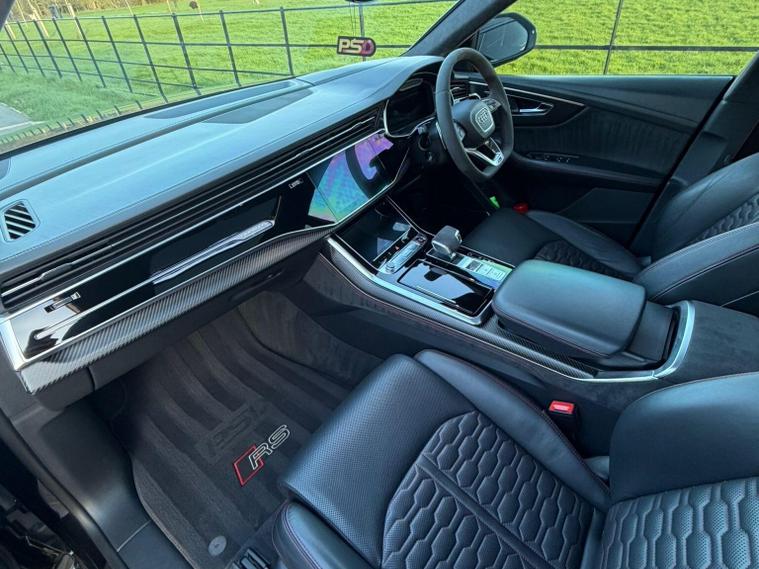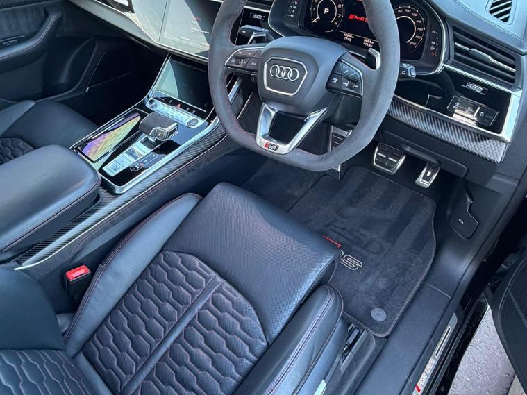 This 2020 Audi RSQ8 TFSI V8 Vorsprung is a remarkable example of performance and luxury, boasting a powerful 4.0 litre petrol engine and a sophisticated four wheel drive system. As a Euro 6 compliant vehicle, it offers impressive efficiency alongside its dynamic capabilities. This model is equipped with the highly desirable Vorsprung trim, enhancing its already premium offering.Experience exhilarating acceleration with a 0-62mph time of just 3.8 seconds, showcasing the sheer power of this V8 engine. The RSQ8 provides ample space for all your needs, including a large boot, making it as practical as it is potent. For added convenience and safety, it features Audi Side Assist for enhanced blind spot awareness and the Audi Smartphone Interface with wireless Apple CarPlay. Enjoy an immersive audio experience with the Bang and Olufsen Premium Sound System, and maintain perfect comfort for all occupants with the 4 Zone Automatic Air Conditioning. The panoramic glass sunroof adds an airy feel to the cabin, further elevating the driving experience. This vehicle also offers a substantial towing weight of 3500 kg, providing versatility for various needs..