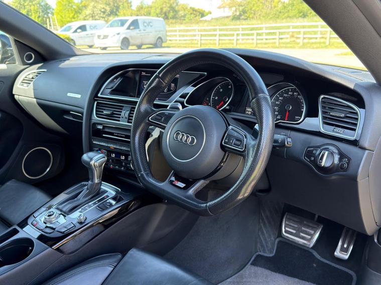 This Audi A5 TDI Black Edition Plus from 2015 boasts a clear vehicle history and has been cherished by just one owner. Under the bonnet, you'll find a powerful 2.0 litre diesel engine paired with Audi's renowned four wheel drive system, ensuring confident performance in all conditions. This Euro 6 compliant model offers an impressive 0-62mph acceleration time of just 7.4 seconds. Inside, the cabin is elevated by the Audi Leather Interior. The large boot space provides excellent practicality for everyday use and longer journeys. The combination of its single owner provenance, impressive acceleration, and the exclusive interior leather options clearly sets this Audi A5 apart from other vehicles in its class, offering a unique blend of performance, luxury, and thoughtful ownership history..
