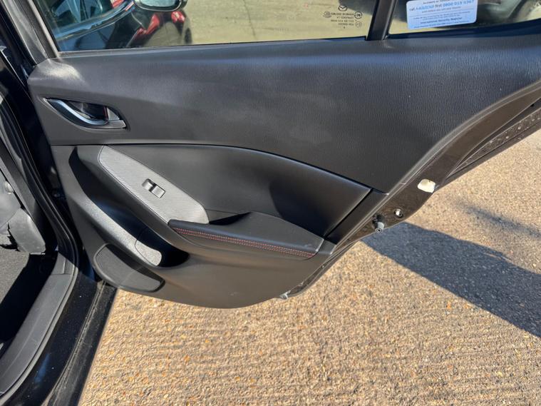 This 2015 Mazda3 SKYACTIV-G Sport Nav boasts an exceptionally low mileage of just 53, 165 miles, a remarkable figure for its age, and comes with a full dealership service history. This particular Mazda3, a 2.0L petrol model, is presented in the Sport Nav trim and benefits from a clear vehicle history check. Inside, you'll find a premium BOSE Centrepoint Surround System with nine speakers for an immersive audio experience, and the driver's seat offers power slide adjustment for optimal comfort. Exterior features include Bi-Xenon headlights that automatically activate at dusk, along with front parking sensors and parking assistance for added convenience.The Mazda3 SKYACTIV-G Sport Nav offers a compelling blend of performance and practicality. Its acceleration is noteworthy, achieving 0-62mph in a brisk 8.2 seconds, demonstrating its responsive 2.0L engine. This performance, combined with its generous boot space, makes it a versatile choice for various needs. The inclusion of a 6 month warranty and 12 months MOT provided on purchase further enhances its appeal, indicating that this vehicle is well maintained and ready for its next owner, offering a superior proposition compared to other vehicles in its class..