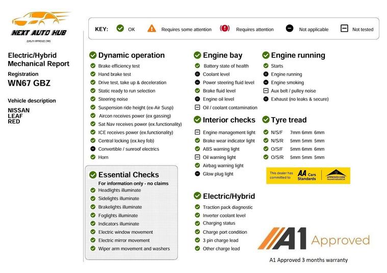 Boasting a full dealership service history and an MOT valid until October 2026, this 2017 Nissan Leaf Tekna offers excellent peace of mind. As an electric vehicle with a 30 kWh battery, it provided a maximum range of 153 miles when new. Charging is convenient, taking approximately 9 hours for a full charge at home using a 7kW charger, while rapid public charging can replenish the battery from empty to 80% in just 30 minutes. This particular example has a clear vehicle history check, ensuring its integrity.The Tekna trim level comes equipped with a host of desirable features designed to enhance your driving experience. Enjoy effortless parking with the Around View Monitor, offering a 360 bird's eye view, complemented by automatic headlights that include a useful follow me home function. Stay connected on the go with Bluetooth telephone integration, and maintain a comfortable cabin temperature with the energy efficient digital climate control. The generous boot space is another practical highlight, making this Nissan Leaf a versatile choice for everyday use and longer journeys alike..