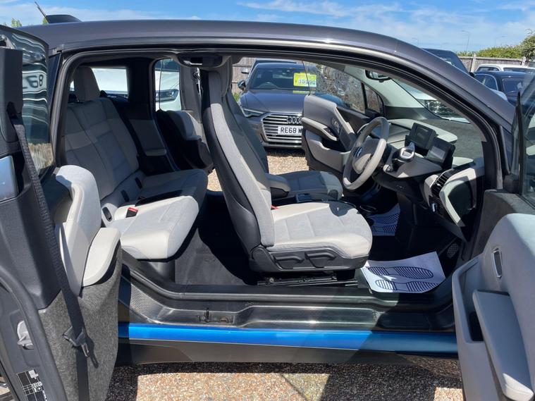 ZERO DEPOSIT FINANCE AVAILABLE, 6 MONTHS NATIONWIDE WARRANTY, 12 Months Free AA Breakdown Cover, Hpi Clear, 2 keys, all previews MOTs available, we are located at CANVEY ROAD, CANVEY ISLAND, ESSEX, SS8 0QD, This 2015 BMW i3 presents an exceptional opportunity with its remarkably low mileage of just 23, 000 miles, a testament to its careful ownership by only two previous keepers. As a fully electric vehicle, it offers an efficient and sustainable driving experience. This particular model features the distinctive Interior World Loft with Carum Spice Grey cloth and synthetic leather upholstery, complemented by stylish 19in i BiColour Light Turbine Alloy Wheels. For enhanced convenience and safety, it is equipped with PDC Park Distance Control for both the front and rear, a reversing assist camera, and the comprehensive Park Assist Package, ensuring effortless manoeuvring in any situation.The BMW i3 boasts impressive performance, achieving 0-62mph in a swift 7.2 seconds, demonstrating its responsive acceleration. With a battery total capacity of 22 kWh, it offered a maximum range of 100 miles when new, and a full charge at home using a 7kW charger takes approximately 3 hours, making it practical for daily use. These attributes, combined with its advanced features and low ownership history, position this BMW i3 as a standout choice for those seeking a premium electric vehicle..