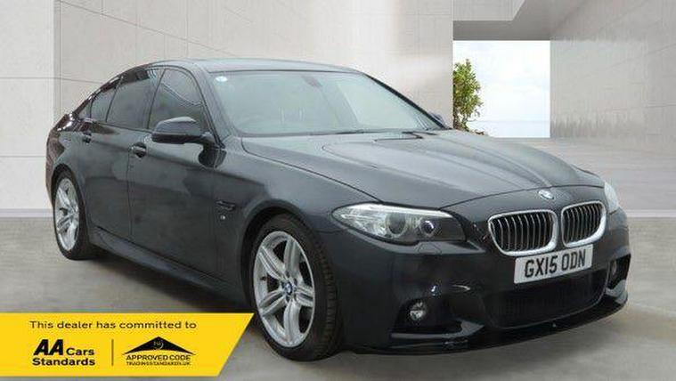2015 BMW 520D finished in Metallic grey with Low Miles & Economically Friendly. This car is a well Equipped Great First or City Car. Includes Interior Features such as; Adjustable Head Restraints, Air Conditioning, Bottle Holders - Front Centre Console and Door, Bottle Holders - Rear Door, Door Courtesy Lights, Driver and Passenger Sun Visor with Ticket Holder, Driver Seat Height Adjustment, Front Door Pockets, Height Adjustable Steering Column, Luggage Compartment Light, Rear Door Pockets, Split Folding Rear Seats - 60-40, Sun Visors with Vanity Mirrors Exterior Features, Allow wheels, Door Handles - Body Coloured, Door Mirrors - Body Coloured, Electric Adjustment and Heated Door Mirrors, Electric Windows - Front and Rear, One Touch Down Drivers Window Control, Rear Spoiler with Integrated Brake Light, Tyre Repair Kit Other Features and Key Information 12V Power Outlet - Front x2, Cruise Control with Speed Limiter, Daytime Running Lights, Power Assisted Steering, RDS Radio-CD Player with MP3 Compatibility, Speakers x2, Trip Computer, Tyre Pressure Monitoring System - TPMS, USB and AUX Connections, ABS - Anti-Lock Brake System, Airbags - Driver, Airbags - Front Passenger, Airbags - Front Side, Airbags - Full Length Curtain, BAS - Brake Assist System, Childproof Rear Door Locks, ESP - Electronic Stability Programme, Front and Rear Seatbelt Reminder, Front Passenger Airbag De-Activation Switch, Immobiliser, ISOFIX Child Seat Anchorage Points - Rear - Outer Rear, Remote Central Locking. *NO HIDDEN ADMIN FEES* 1 YEAR AA BREAKDWON COVER* MINIMUM 3MM TYRE DEPTH, *NO EXTRA CHARGE FOR OUR 3 MONTHS WARRANTY *NO FUEL CHARGES *NO SURCHARGE FOR CREDIT CARDS We supply our vehicles with a Minimum 9 MONTHS MOT Test. If the vehicle requires a service in the next 3 months or 3000 MILES (WHICHEVER COMES SOONEST) we will service the vehicle before delivery. We are fully authorised & Regulated by the Financial Conduct Authority (FCA) and can offer a wide range of finance products and advice. Please visit our website at dealer's website to find out more about us and detailed directions to our site also view our full range of stock. With Over 65 similar cars always available..