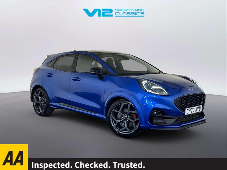 Introducing the Ford Puma 1.5T EcoBoost ST SUV 5dr Petrol Manual Euro 6 (s/s) (200 ps) - a dynamic and stylish vehicle that is sure to turn heads on the road. Finished in a striking Blue colour with a Black Contrast Roof, this Ford Puma stands out from the crowd. The Desert Island Blue adds a touch of sophistication to its already impressive exterior.Equipped with a powerful 1.5T EcoBoost engine producing 200 ps, this SUV delivers a thrilling driving experience with responsive handling and impressive performance. Whether you're cruising through the city streets or tackling off-road terrain, the Ford Puma is up for the challenge.Don't miss out on the opportunity to own this exceptional Ford Puma. Contact us today to schedule a test drive and experience the thrill of driving this remarkable SUV for yourself. For peace of mind this vehicle has completed a multi point AA dealer's website finance is also available.We are open 7 days a week and have more than 1500 cars to choose from.All our Euro 4 Petrol and Euro 6 Diesel vehicles meet the ULEZ standard.Vehicle specification can be found below. From time to time vehicles have manufacturer recalls notified. Please read our recall policy on our website for further information.DISCLAIMER: While every effort is made to ensure the accuracy of vehicle specifications, features, and descriptions, errors and omissions may occur. Specifications and equipment may vary and may not be present on the vehicle at the point of sale. Please verify all details with a member of our sales team prior to purchase..