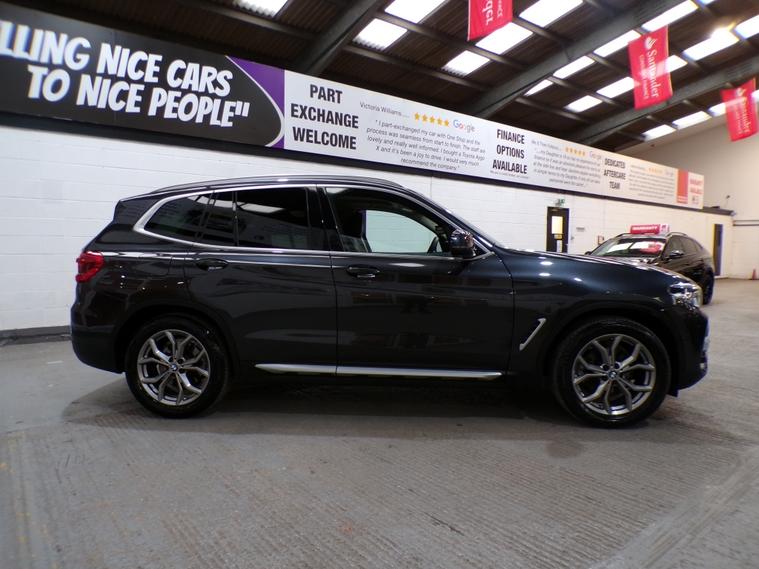 This 2019 BMW X3 20d xLine boasts two keys, a six stamp service history and has had only one owner from new, ensuring excellent provenance. This Euro 6 compliant, four wheel drive model features a responsive 2.0L diesel engine, offering a brisk 0-62mph acceleration in just 8.0 seconds. Its MOT is valid until March 2027, providing peace of mind. The xLine trim enhances its appeal, and it comes equipped with a Visibility Package including LED headlights and Adaptive LED Headlights with High Beam Assistant, alongside Bluetooth Hands Free with USB Audio Interface for seamless connectivity. Further enhancing your driving experience, this X3 includes a Reversing Assist Camera for easier parking and automatic air conditioning with climate control to maintain a comfortable cabin temperature. The generous boot space is ideal for all your luggage and shopping needs. These carefully selected features, combined with its strong performance and comprehensive history, demonstrate why this BMW X3 stands out from other vehicles in its class. It will come with a three month Warranty which includes full roadside assist breakdown cover, provided by a trading standard approved company. For full details of this vehicle and to request a walk around video please give one of our dedicated sales team a call on 01616232251 PLEASE NOTE THAT CURRENTLY NOT ALL CARS ON SITE HAVE BEEN FULLY PREPARED TO SHOWROOM STANDARD. Therefore, appointments are preferred to give us a chance to check the car over prior to your visit. This is not compulsory and should you wish to visit the site without an appointment please just bear in mind the vehicles may still require all or some of their prep work. Thank you in anticipationof your patience. ALL CARS COME WITH AT LEAST A TEN MONTH INDEPENDANT MOT WITH ALL ADVISORIES COMPLETED PRIOR TO COLLECTION. ALL CARS HAVE AN OIL AND FILTER SERVICE (IF ONE IS DUE) PRIOR TO COLLECTION ALL OUR CARS ARE HPI CLEAR PART EXCHANGE WELCOME, VERY COMPETIVE VALUES OFFERED FINANCE OPTIONS ARE AVAILABLE , GREAT RATES OFFERED AND WE ARE FULLY FCA REGULATED.