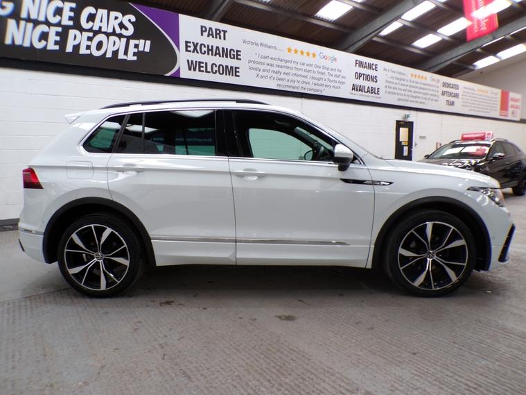 This 2021 Volkswagen Tiguan TSI R Line boasts two keys and a full service history, ensuring its excellent provenance, and will be supplied with a 12 month MOT for your peace of mind. This Euro 6 compliant model features a responsive 1.5 litre petrol engine, offering an engaging driving experience with a 0-62mph acceleration time of just 9.2 seconds. Inside, you'll find a wealth of R Line trim features, including heated leather trimmed three spoke multifunction steering wheel and gear knob, alongside a heated seats and a heated steering wheel from the Winter Pack. The App Connect system, compatible with Android Auto and Apple CarPlay, keeps you seamlessly connected, while LED Plus self levelling dipped and main beam headlights illuminate your journey. The Tiguan is designed for practicality and comfort, evident in its generous boot space, perfect for families or those with active lifestyles. The Assistance Pack Plus enhances safety and convenience, incorporating Blind Spot Assistance and front and rear parking sensors to make manoeuvring effortless. It will come with a three month Warranty which includes full roadside assist breakdown cover, provided by a trading standard approved company. For full details of this vehicle and to request a walk around video please give one of our dedicated sales team a call on 01616232251 PLEASE NOTE THAT CURRENTLY NOT ALL CARS ON SITE HAVE BEEN FULLY PREPARED TO SHOWROOM STANDARD. Therefore, appointments are preferred to give us a chance to check the car over prior to your visit. This is not compulsory and should you wish to visit the site without an appointment please just bear in mind the vehicles may still require all or some of their prep work. Thank you in anticipationof your patience. ALL CARS COME WITH AT LEAST A TEN MONTH INDEPENDANT MOT WITH ALL ADVISORIES COMPLETED PRIOR TO COLLECTION. ALL CARS HAVE AN OIL AND FILTER SERVICE (IF ONE IS DUE) PRIOR TO COLLECTION ALL OUR CARS ARE HPI CLEAR PART EXCHANGE WELCOME, VERY COMPETIVE VALUES OFFERED FINANCE OPTIONS ARE AVAILABLE , GREAT RATES OFFERED.