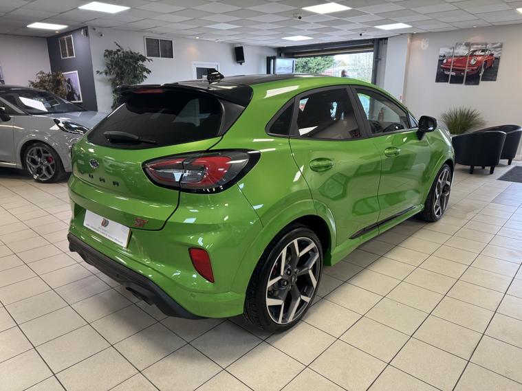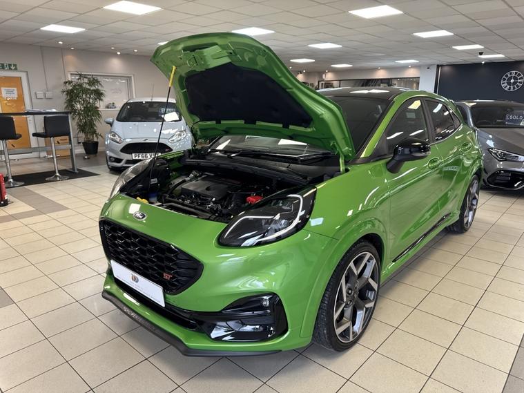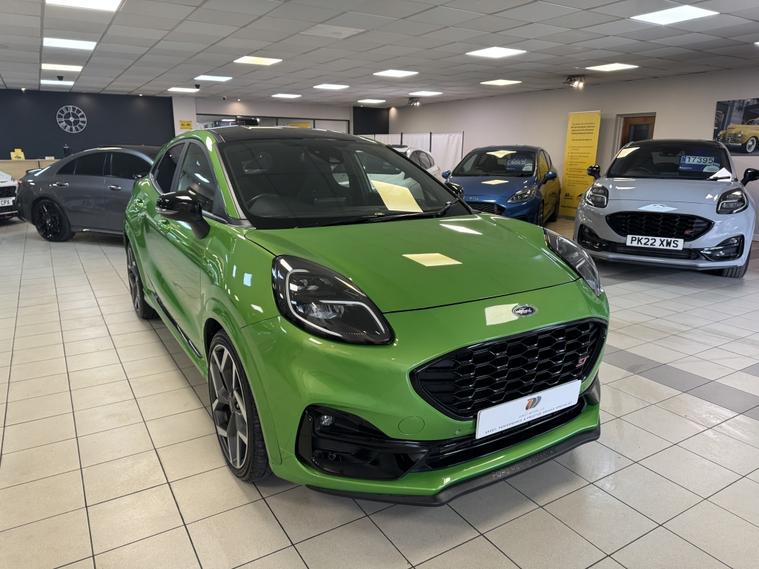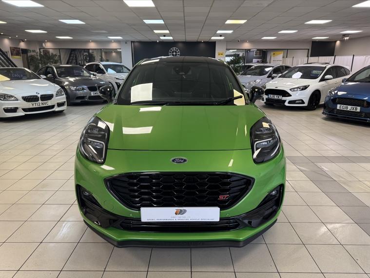 We are pleased to offer this 2022 Ford Puma ST finished in Mean Green, covering 28, 000 miles. This vehicle is in excellent condition and comes with comprehensive service history, 2 keys, and has been carefully prepared by our team at Direct Motors J28. Specification includes: ST Performance model with Black Pack Leather / Alcantara Ford Performance seats with extendable leg rests & heated seats (Winter Pack) SYNC 3 infotainment system Satellite navigation Front and rear parking sensors with park assist Cruise control Bluetooth / DAB radio / FM Keyless entry & push button start (Keyless Go) B&O premium sound system Apple CarPlay & Android Auto Wireless charging & USB connectivity Voice command & hands-free functionality Flat-bottom multifunction steering wheel Drive modes: Eco / Normal / Sport / Race Track Lane assist, pre-collision assist & traction control Hill start assist & auto start/stop Auto lights & air conditioning Heated front windscreen & heated steering wheel Power folding mirrors & privacy glass Red brake calipers & 19€ diamond cut alloy wheels Manual gearbox 2 keys Comprehensive service history The vehicle has been fully inspected, prepared to a high standard, and is ready to drive away. It drives exceptionally well and represents fantastic value for money. Additional benefits: Low rate finance options available 12 months AA breakdown cover 3 months warranty included Instant valuation on all part exchanges We are a family-run business, conveniently located just off Junction 28 of the M1 in Alfreton, and only a 2-minute walk from the local train station, making us easily accessible. Out of hours enquiries: 01773802192 Viewings and test drives are welcomed€”please contact us to arrange an appointment..