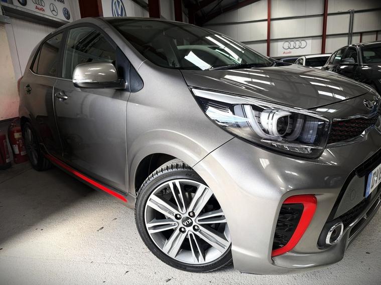 This 2017 Kia Picanto GT Line presents an exceptional ownership proposition with an incredibly low mileage of just 9000 miles, a testament to its careful use by its single owner. This stylish GT Line variant is powered by an efficient 1.0 litre petrol engine, meeting Euro 6 emissions standards. Its provenance is further assured by a full service history, giving you peace of mind. Inside, you'll find convenient features such as Bluetooth connectivity for music streaming, air conditioning to keep you comfortable, and automatic headlight control for added ease.