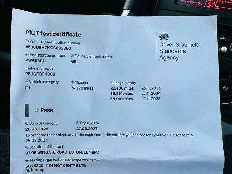 This is a well-maintained, highly efficient Peugeot 3008 in great condition. With only one former keeper and an impressive service record, this car is mechanically sound and ready to drive away today.