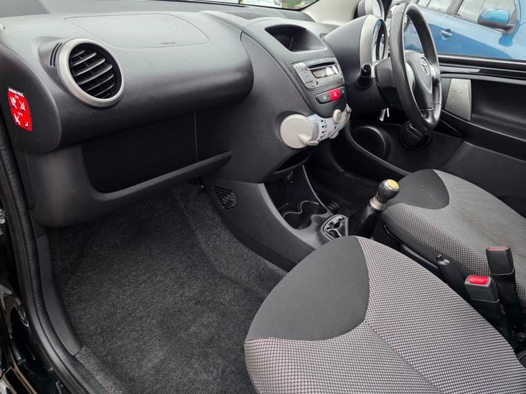 Steve Pearson Car Sales are Pleased to Present this Low Mileage Toyota Aygo 1.0 VVT-I Fire AC in Black. Only One Former Keeper with Lots of Service History.**£20 Road Tax**All usual Toyota refinements include... ABS, air conditioning, alloy wheels, cd player, central locking, 12v power socket, AUX input, electric windows, power steering, adjustable steering, body coloured bumpers, brake assist, cup holders, daytime running lights, engine immobiliser, front airbags, ISOFix anchor point, mp3, radio, side impact airbags, speakers, traction control etc....Looks and Drives Superb. This car comes with 2 Keys, professionally valeted and fully HPI checked. We welcome Part Exchange and can offer Great Finance Deals, Please take a look at our TESTIMONIALS On our Website and Buy In confidence from a long Established Family Firm at dealer's website where we have over 60 cars in stock, for more information please telephone or pop in for a cup of tea! Our showroom and floodlit forecourt are open 7 days a week, , Tameside's Finest Collection of Low Mileage Quality Cars